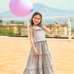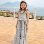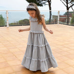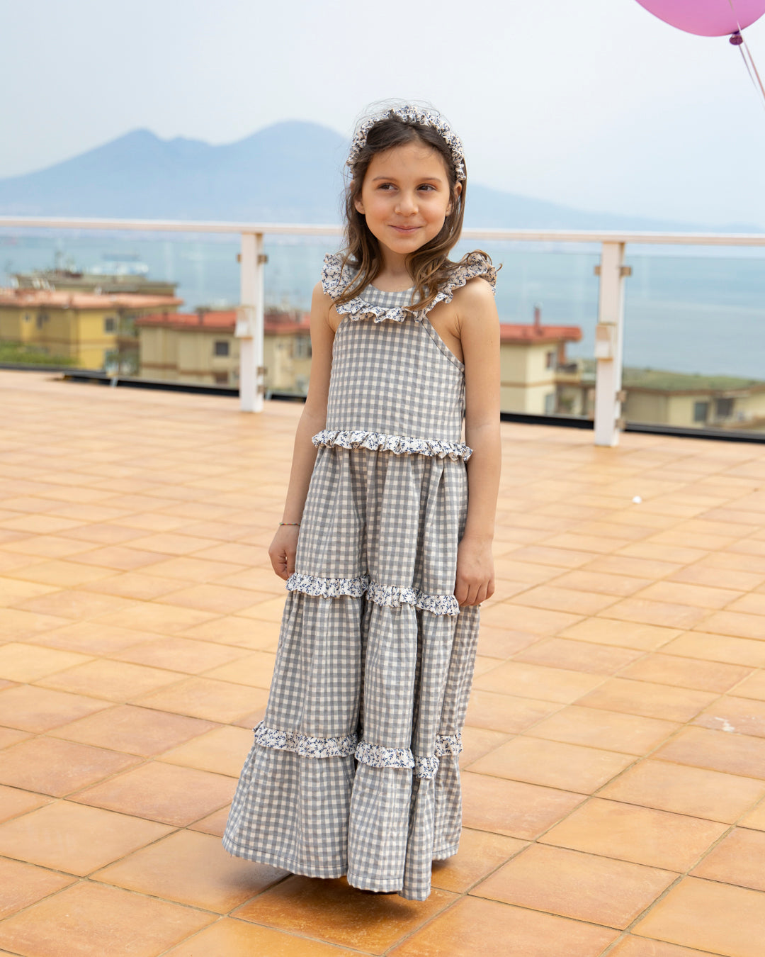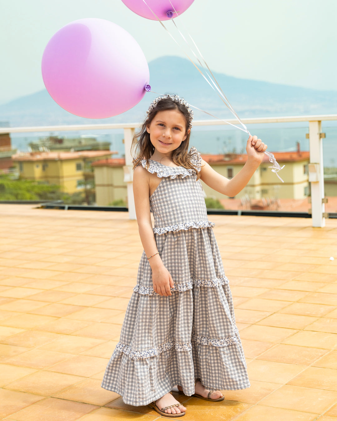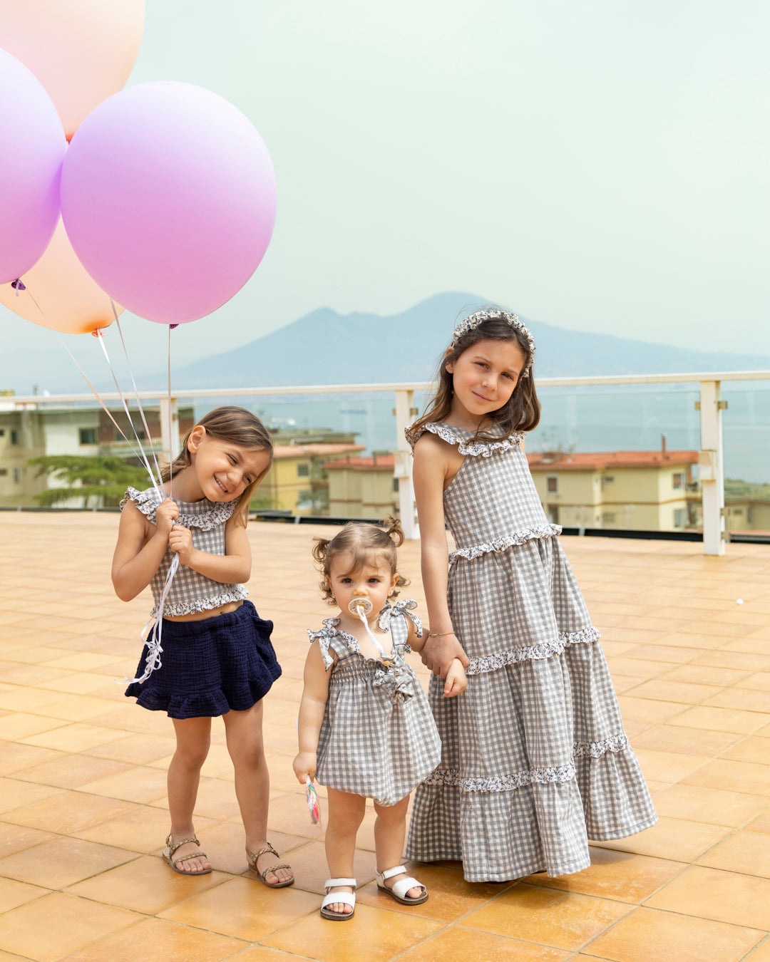 Abito grafico ,una combo di tessuti che si sposa alla perfezione esaltando la bellezza di quat'abito. Scollo all'americana , gonna a balze ampie e il tutto impreziosito da questo gioco di rouches a contrasto , realizzate con la fantasia Adina. L'abito è realizzato in cotone 100% ed il mio must dell'estate 2024!!