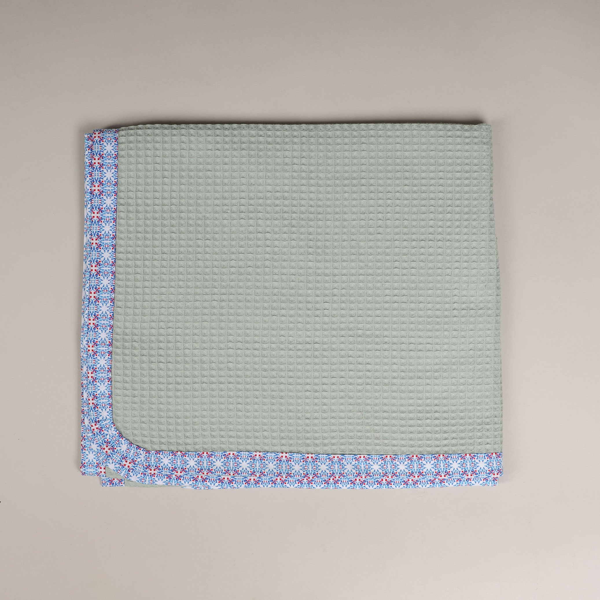 A wonderful pure cotton beach towel with honeycomb texture embellished with inserts made of 100% organic poplin cotton. Its particular size makes it a unique, comfortable and versatile product for our children: perfect for the sea and light for the bags of us mothers.