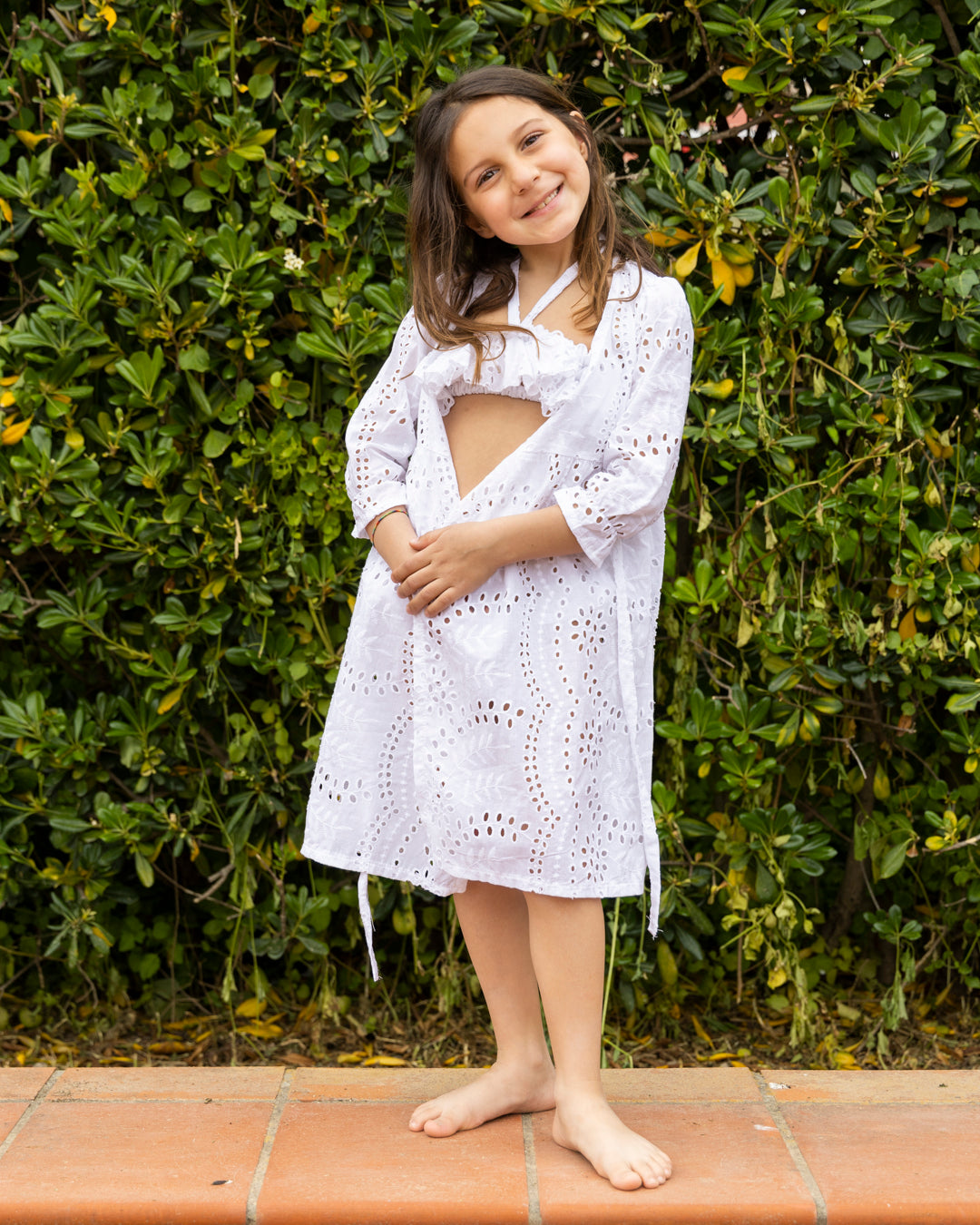 Copricostume dal design rilassato, realizzato in pizzo sangallo 100% un tessuto sempre attuale! Abbiamo rivisitato il modello dell’anno scorso , aggiungendo la chiusa ad incrocio , dando la possibilità di trasformare il capo in un vero e proprio abitino . Idoneo per chi dopo il mare prosegue la giornata!
