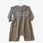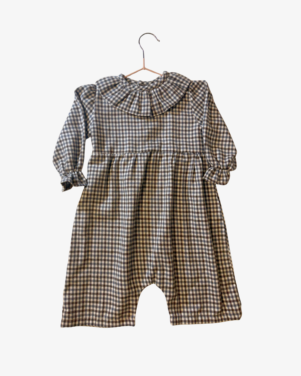Stand collar, front button closure, long sleeves, buttoned hems and curved hem. Made of very soft and flowing cotton and adorned with cotton flannel fabric inserts in warm, wintery shades. Perfect with these trousers to enjoy pleasant days! ••