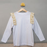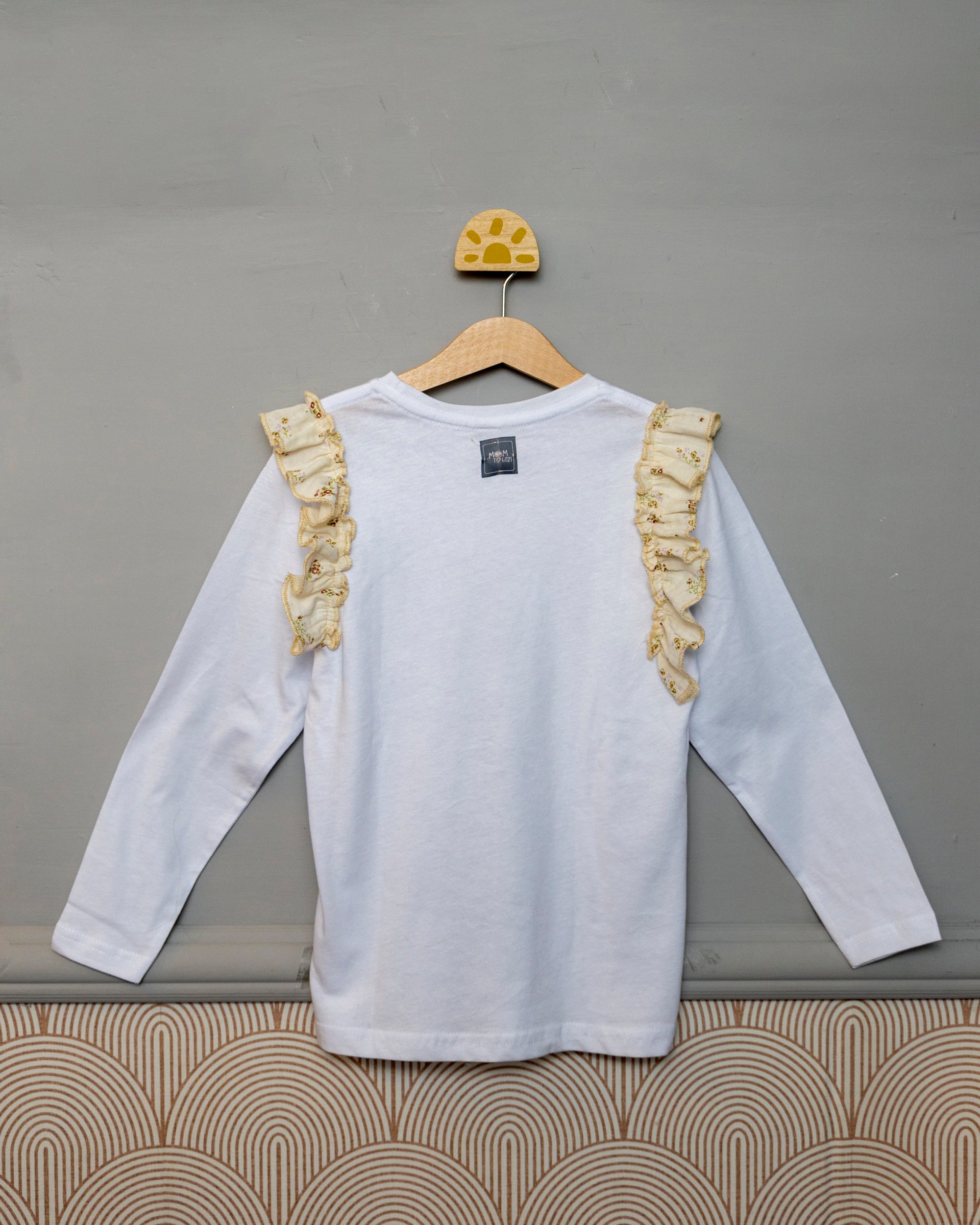 La t-shirt può essere realizzata con rouches in diversi tessuti disponibili.