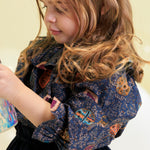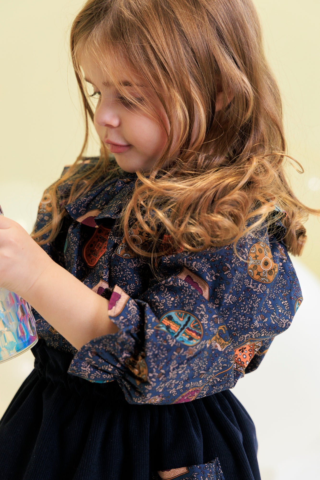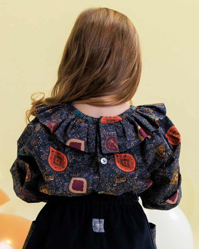La camicetta Indiana, con il suo taglio morbido e i dettagli delicati, si abbina perfettamente alla gonnellina in velluto, creando un look elegante e confortevole pensato per ogni occasione — dalle giornate speciali alle passeggiate d’autunno.