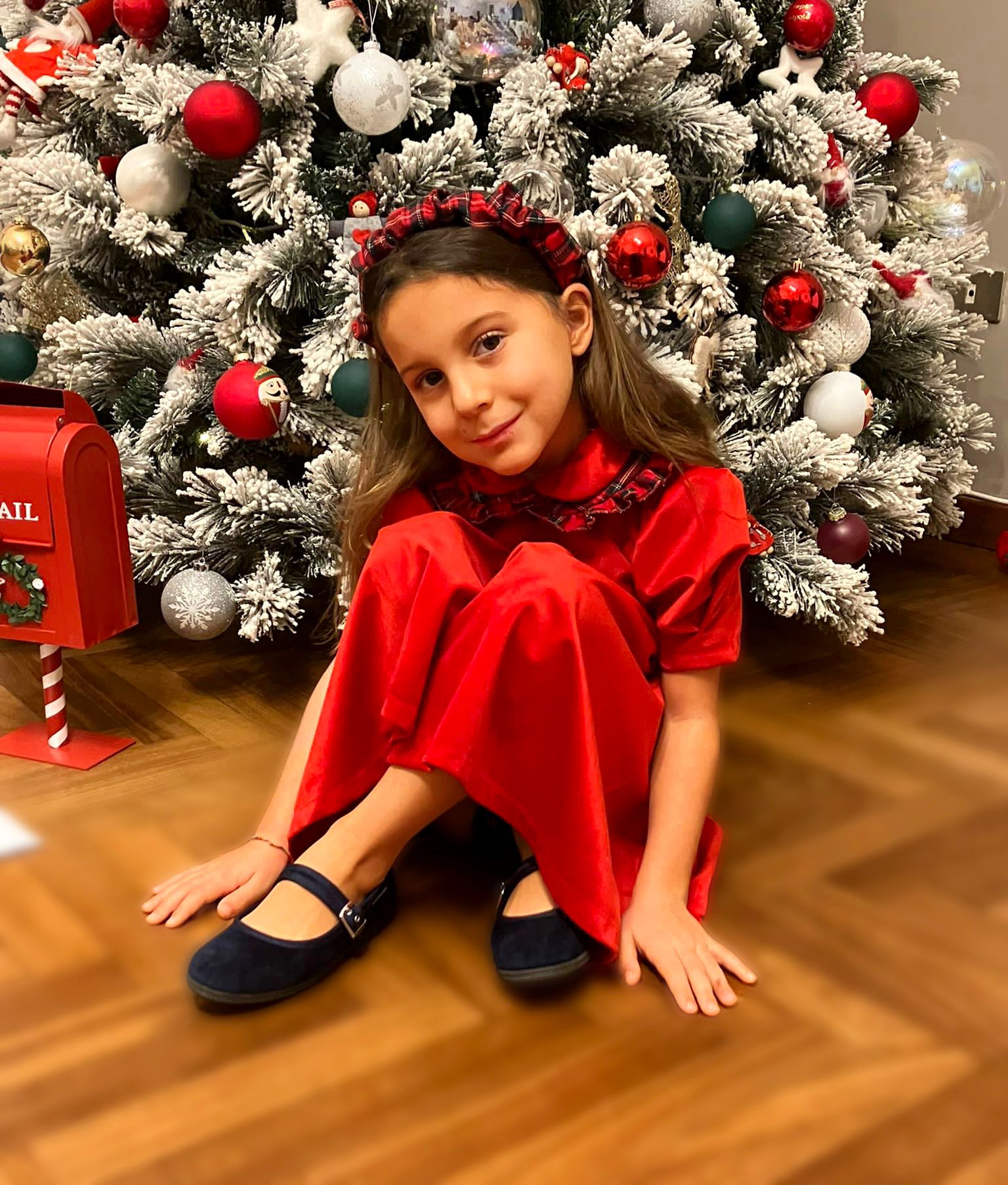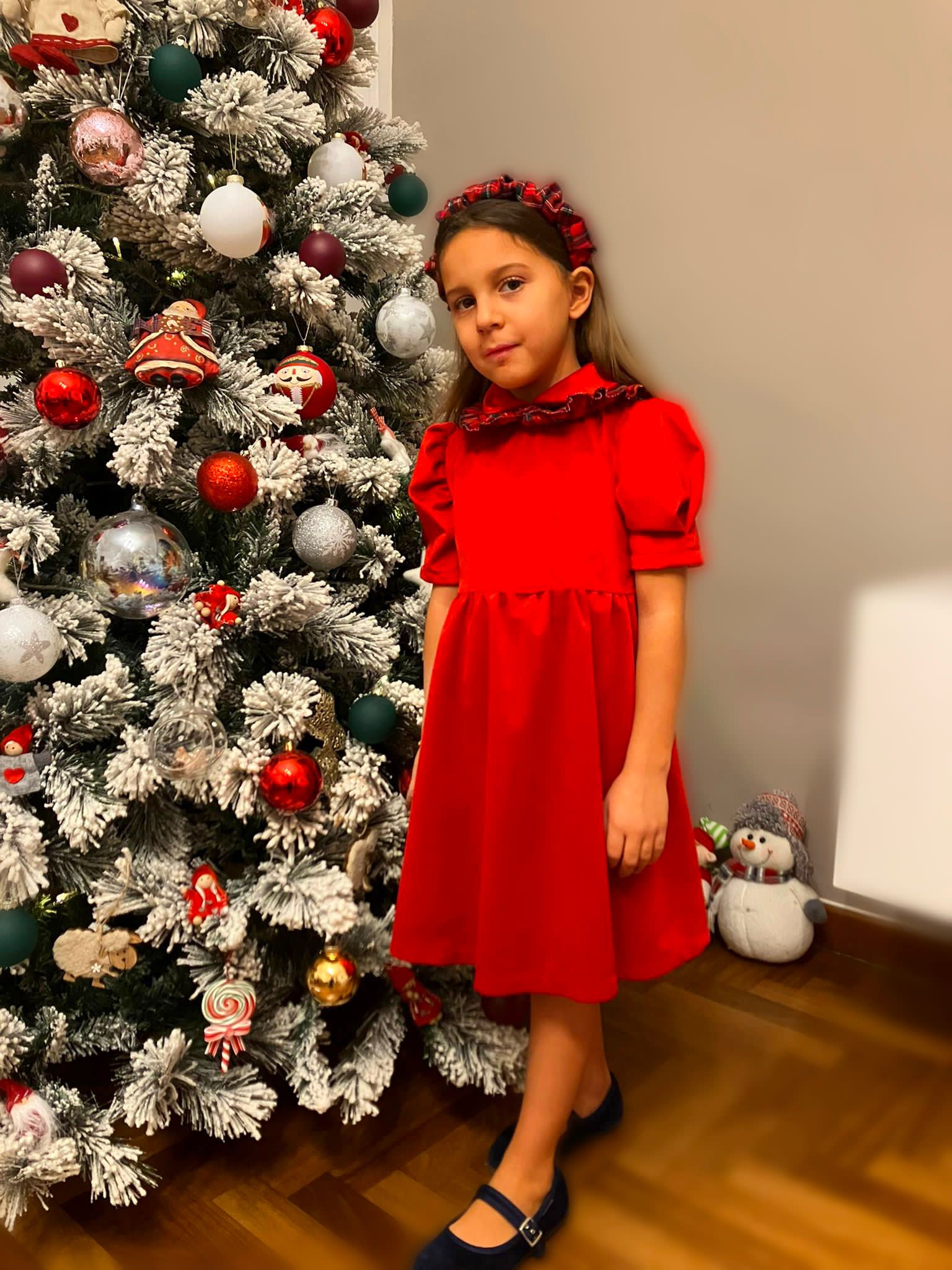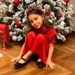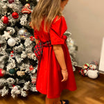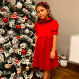 Abito classico in velluto liscio con fiocco e dobbiamo colletto in tartan