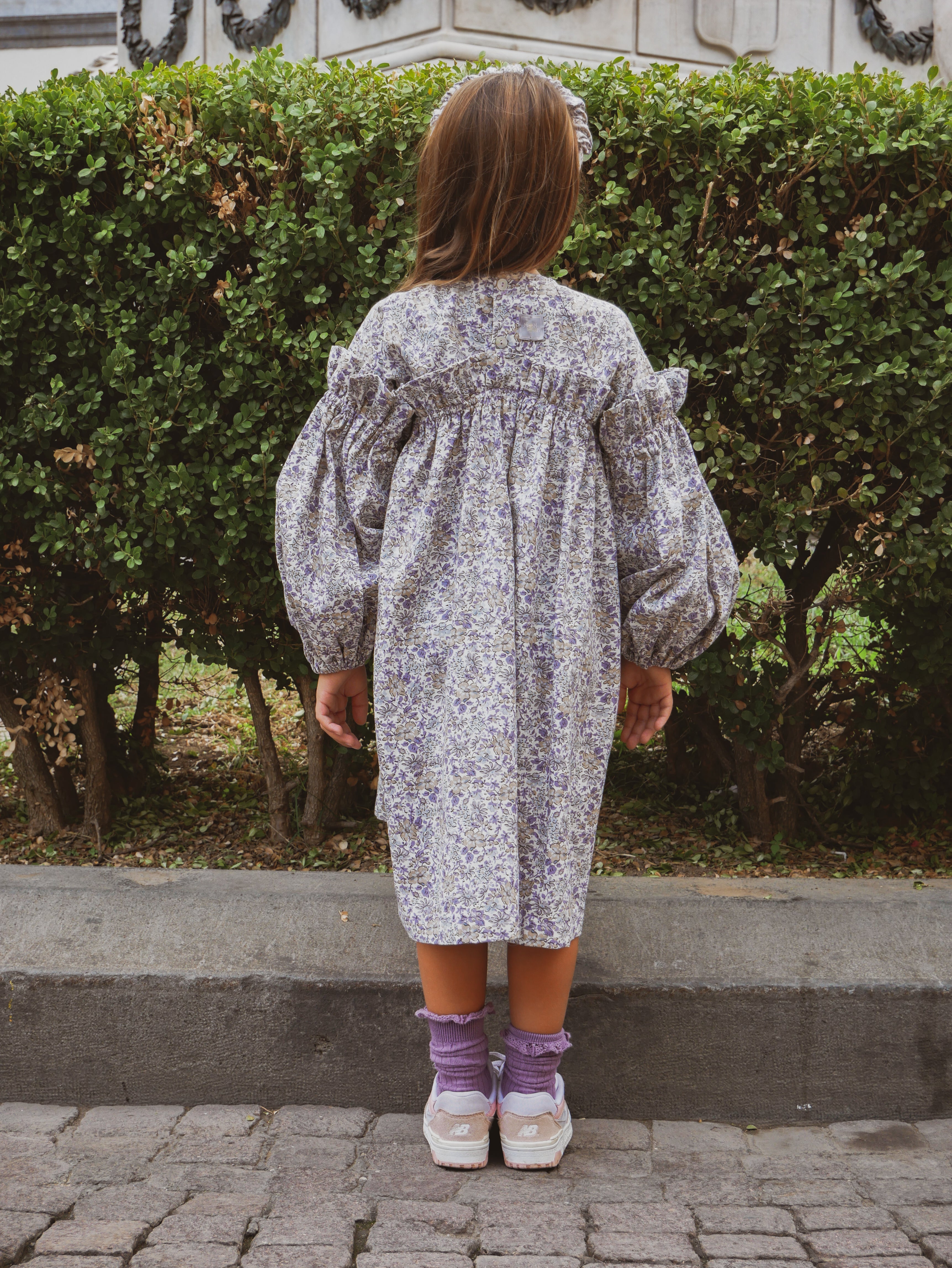 Quest'abito bambina ci trasporta in un universo grafico e colorato. Dinamizzato da maxi lavorazione delle manica, un arriccio che prende vita dalla parte alta del corpetto e si ricongiunge perfettamente alle maniche. Stampa floreale dai colori eleganti dell’autunno!