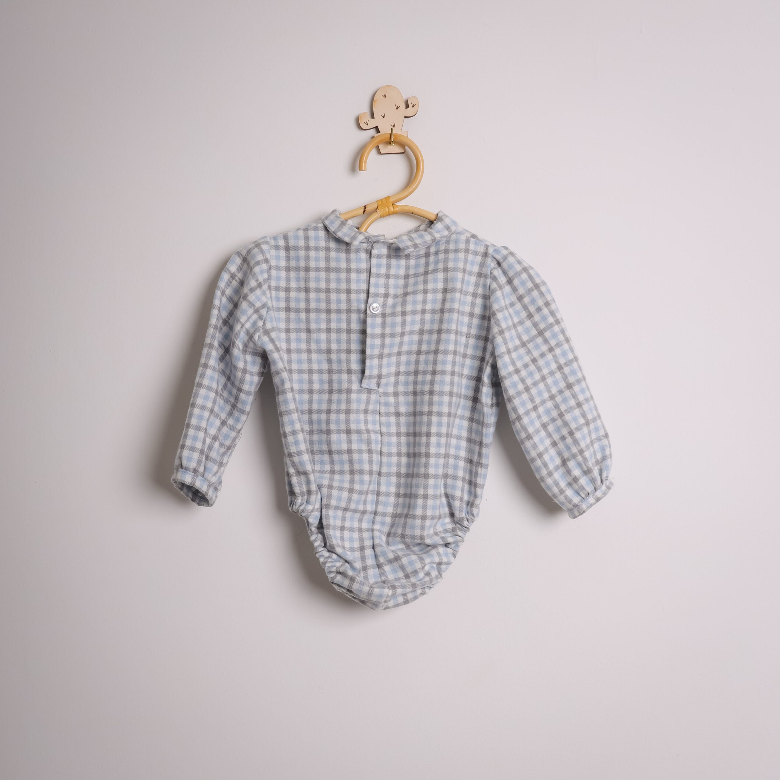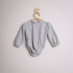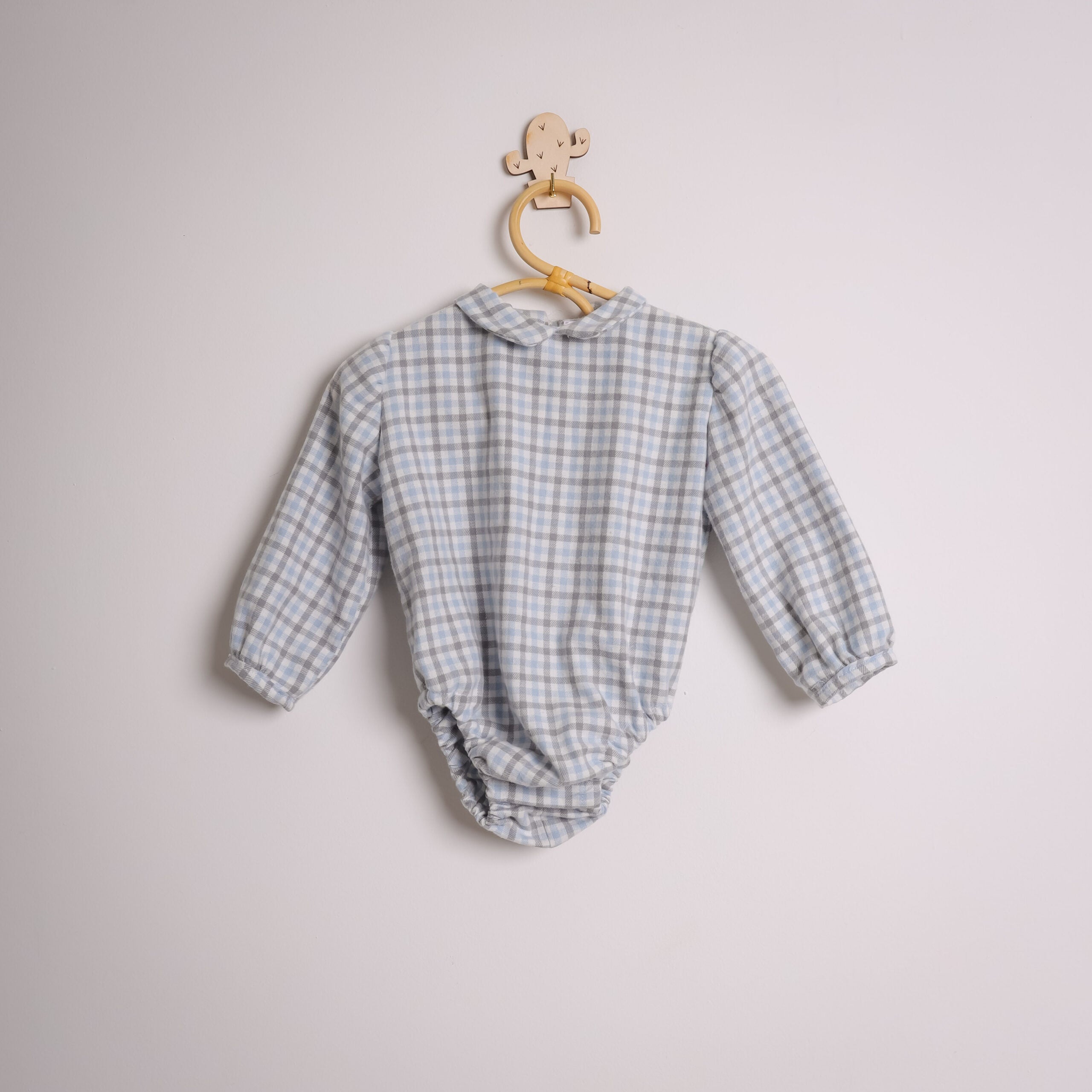 l body è un capo immancabile nell'armadio dei super baby, perfetto per ogni occasione. Questo modello di body con colletto, è comodo da infilare, con bottoni sul retro e bottoni a pressione nell'inguine per una facile apertura. Realizzato interamente in flanella di cotone con proprietà assorbenti e traspiranti piacevole da indossare, si distingue per il motivo a quadroni chiari e delicati. Per un outfit completo, caldo e avvolgente, proponiamo di coordinarlo ad una asimmetrica Jumpsuite di velluto a costine.