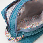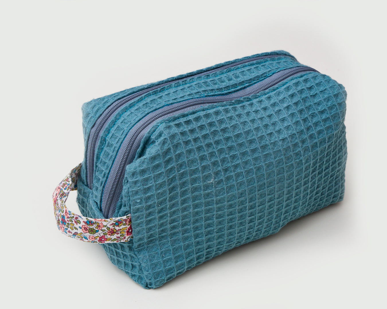 Beauty case con doppia zip in cotone quadretto vichy. Foderato internamente con tessuto popeline fiorato, presenta due scomparti separati per facilitare l’ordine di noi donne . Presa facilissima grazie al manico/gancio realizzato a contrasto.