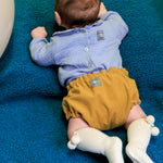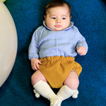 Morbidezza e stile si incontrano in questo body in mussola sartoriale, arricchito da un colletto tondo raffinato e pratici bottoncini per una facile vestizione. Realizzato artigianalmente in Italia, è perfetto per offrire comfort e un tocco di eleganza senza tempo.