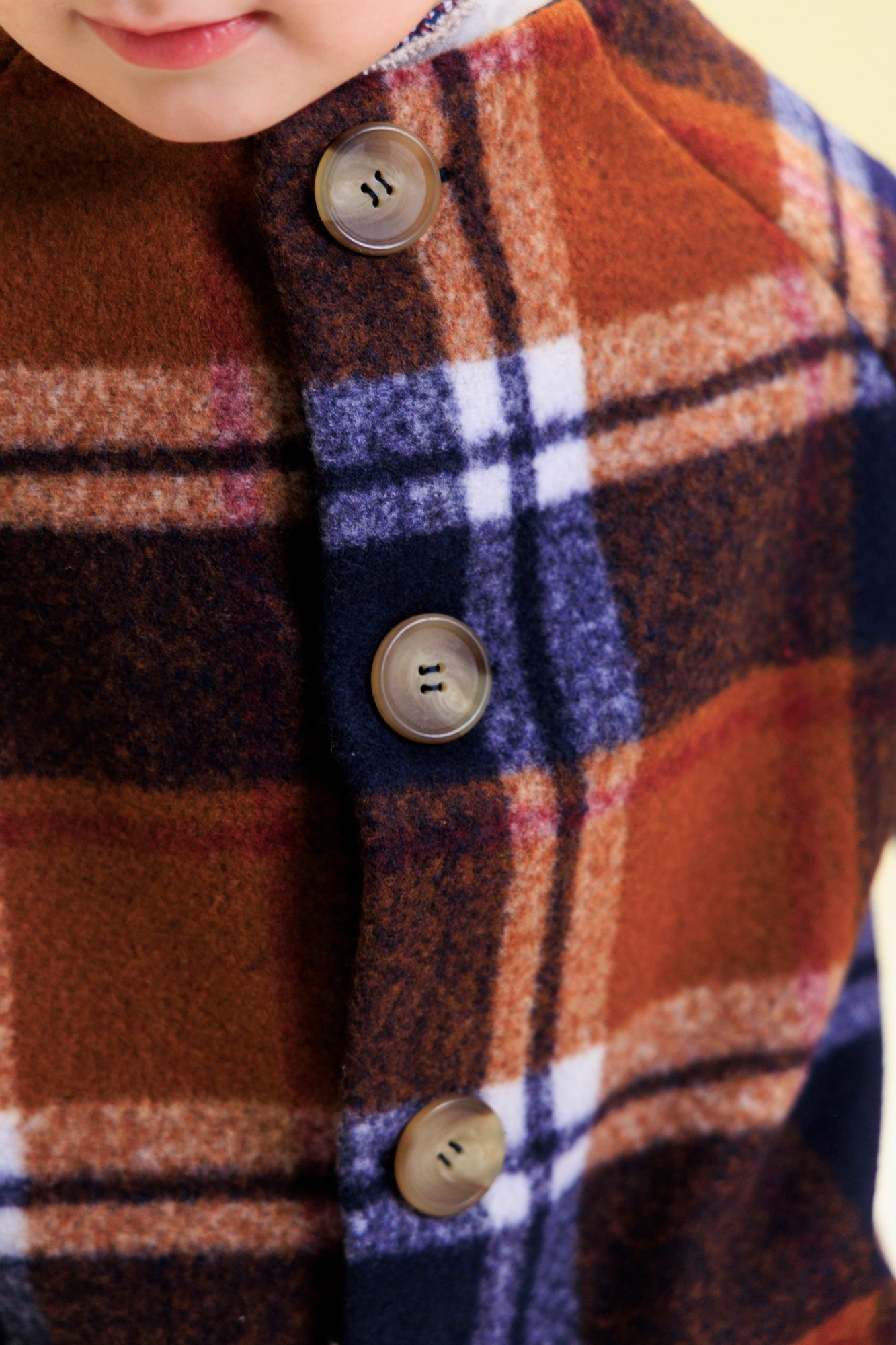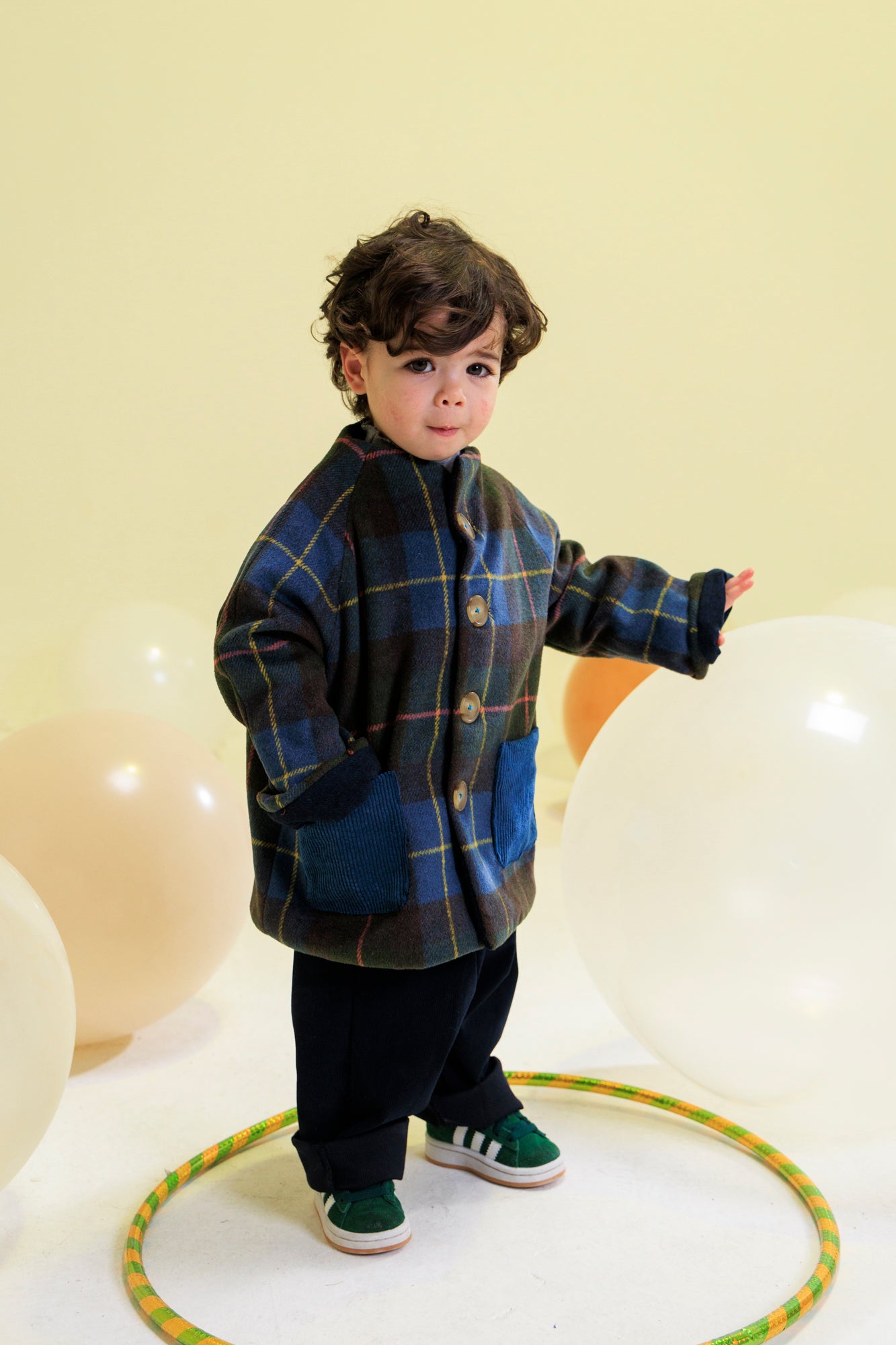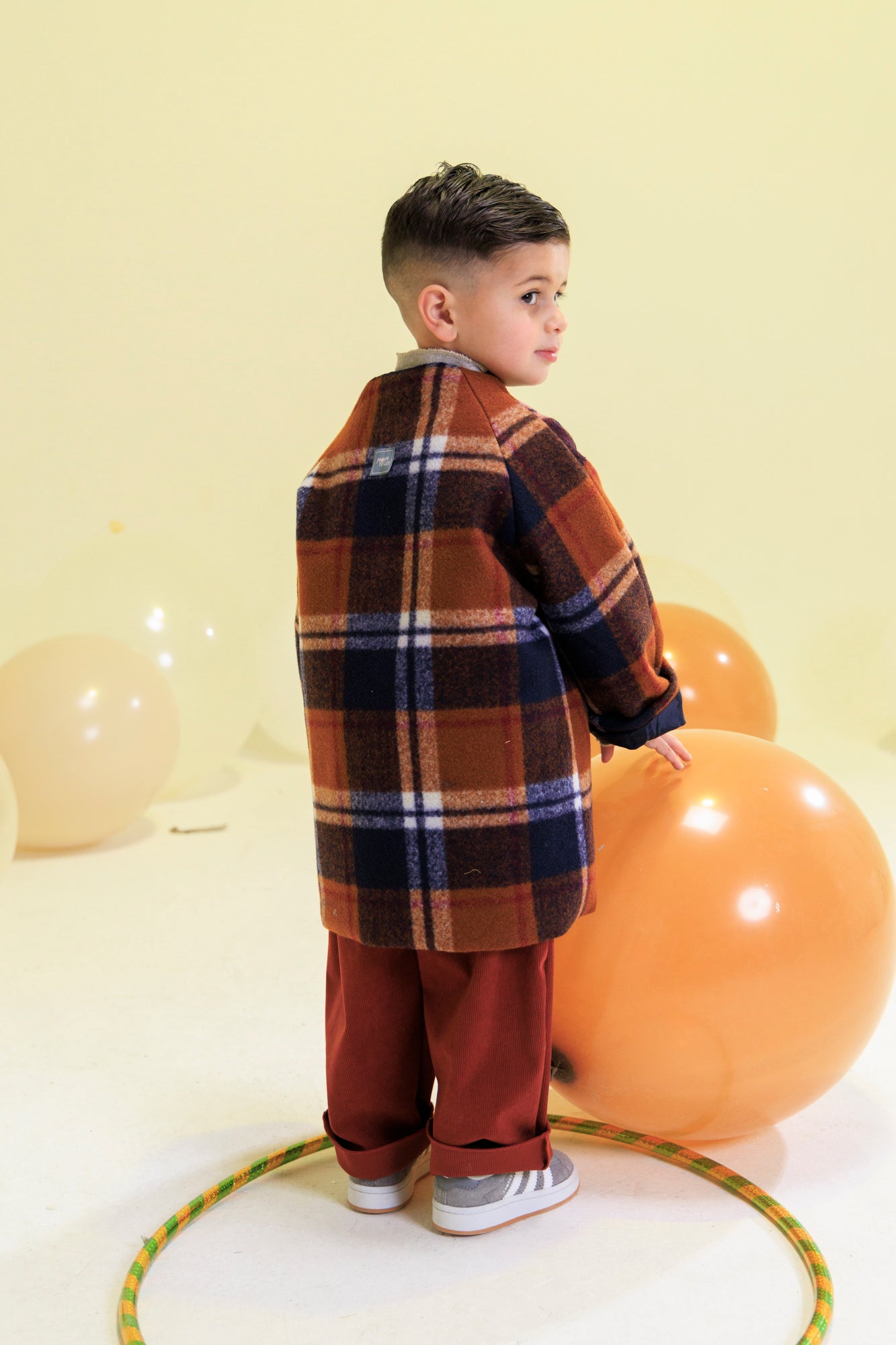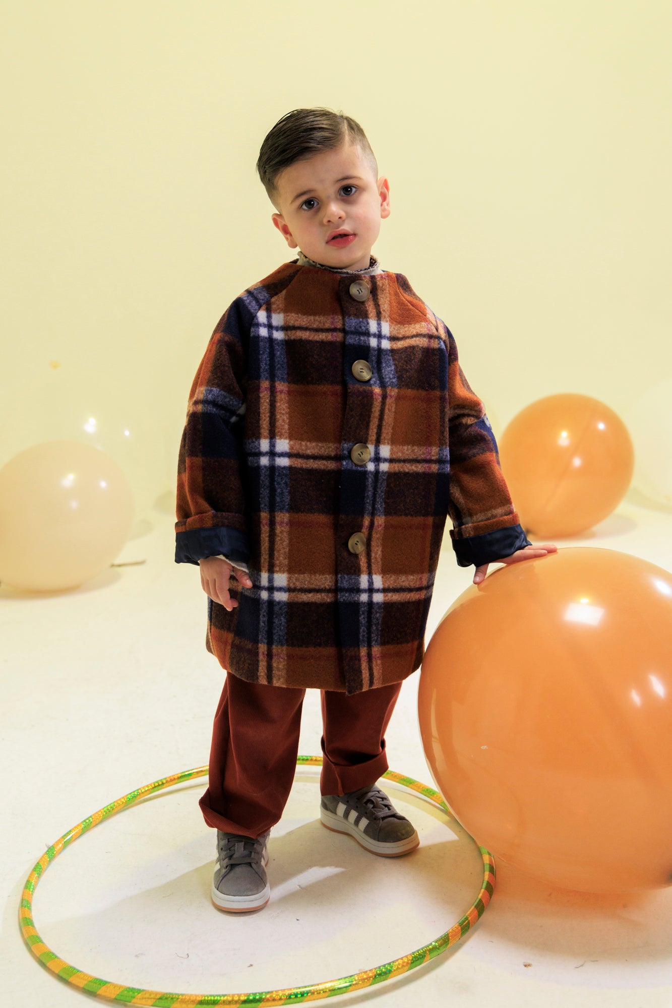 Questo cappotto sartoriale in tartan, foderato è realizzato interamente in Italia, si distingue per la vestibilità over che offre comfort e un look moderno. I bottoni grandi sul davanti aggiungono un tocco di carattere, mentre il tessuto pregiato garantisce calore e raffinatezza in ogni dettaglio.