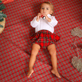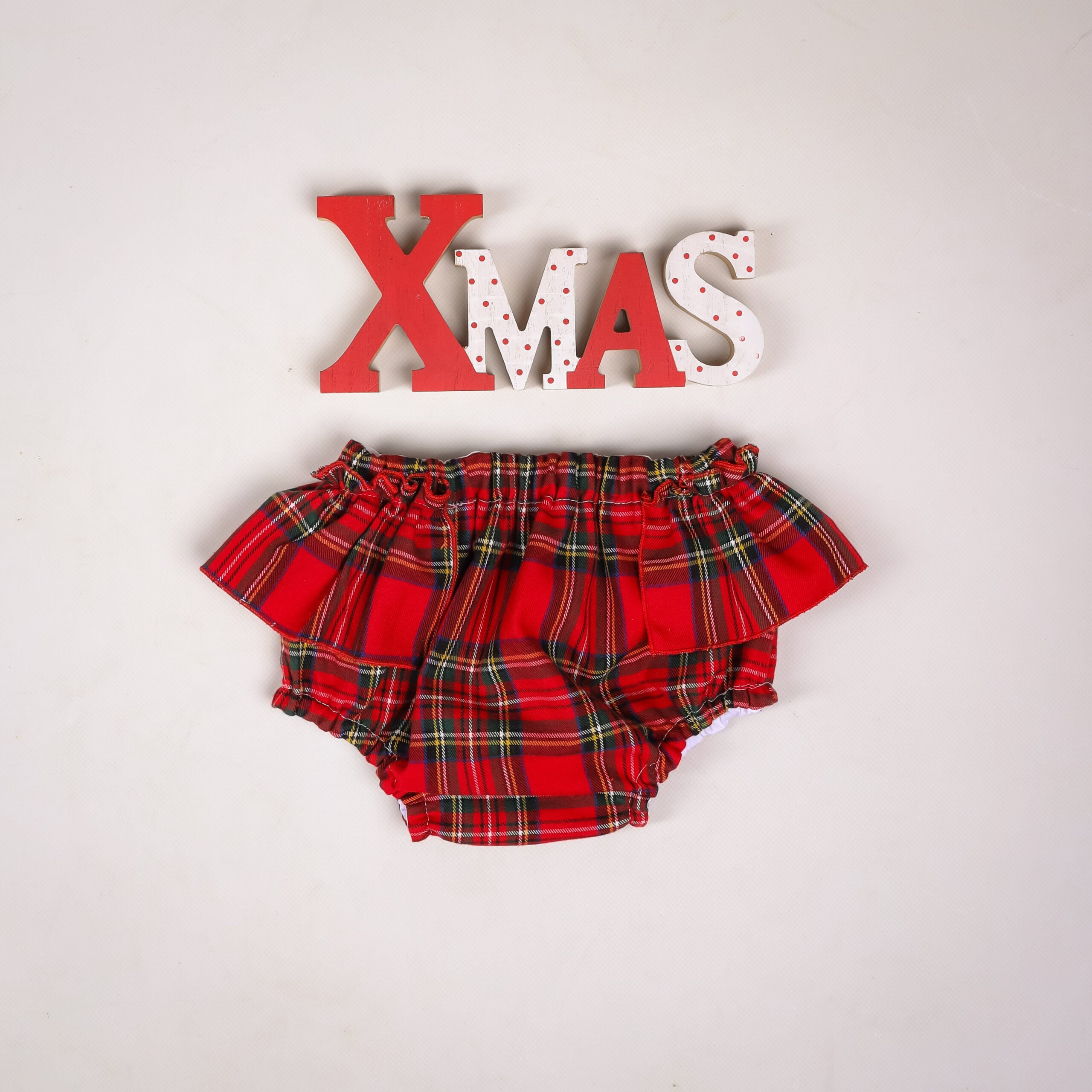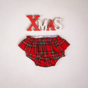 Il Christmas Bloomers è la risposta in stile classico per un natale con i fiocchi. Realizzato con il tipico tessuto scozzese, l'emblema del natale! Questi bloomers sono perfetti da indossare sopra i pannolini per questa magica occasione. Questo modello di bloomers è reso particolare dai dettagli “frufru” sui fianchi che regalano movimento e sinuosità ad un capo classico ed intramontabile. Proponiamo di coordinarlo ad un body in piquet con motivo a pois glitter che donano luminosità e quel tocco di magia all'intero outfit.