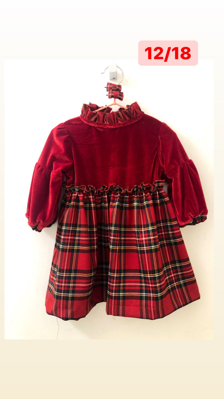 CHRISTMAS DRESS VELLUTO ROSSO E TARTAN ROSSO