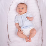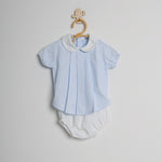 Elegante e raffinato . Questo completo in 100% cotone piquet e dai dettagli da una lavorazione classica e accurata è pronto per essere indossato dai vostri piccoli.