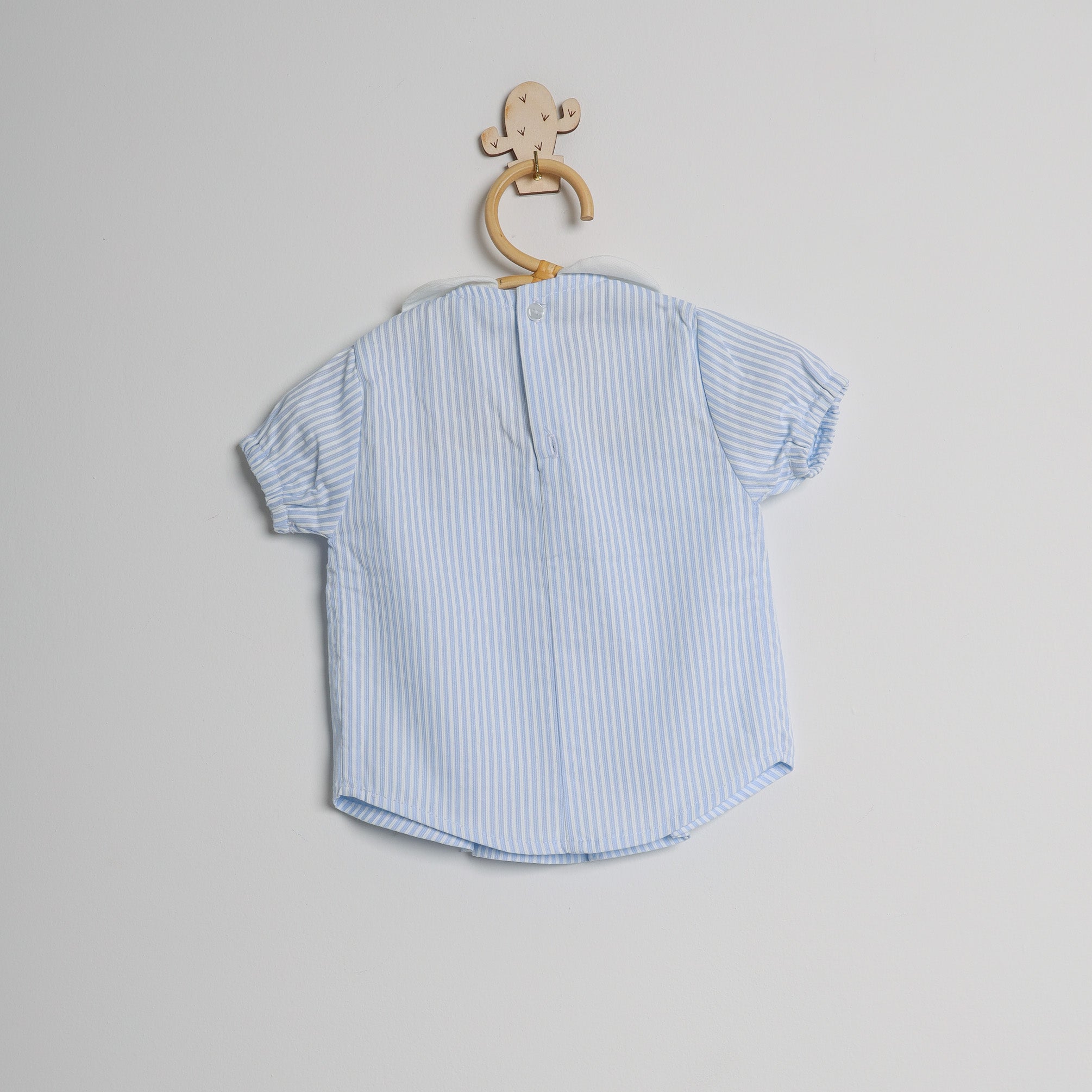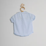 Completino con camicia doppiopetto azzurra e bermuda in piquet bianco sono l’emblema della raffinatezza per un piccolo principe !