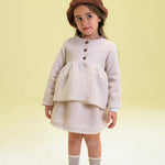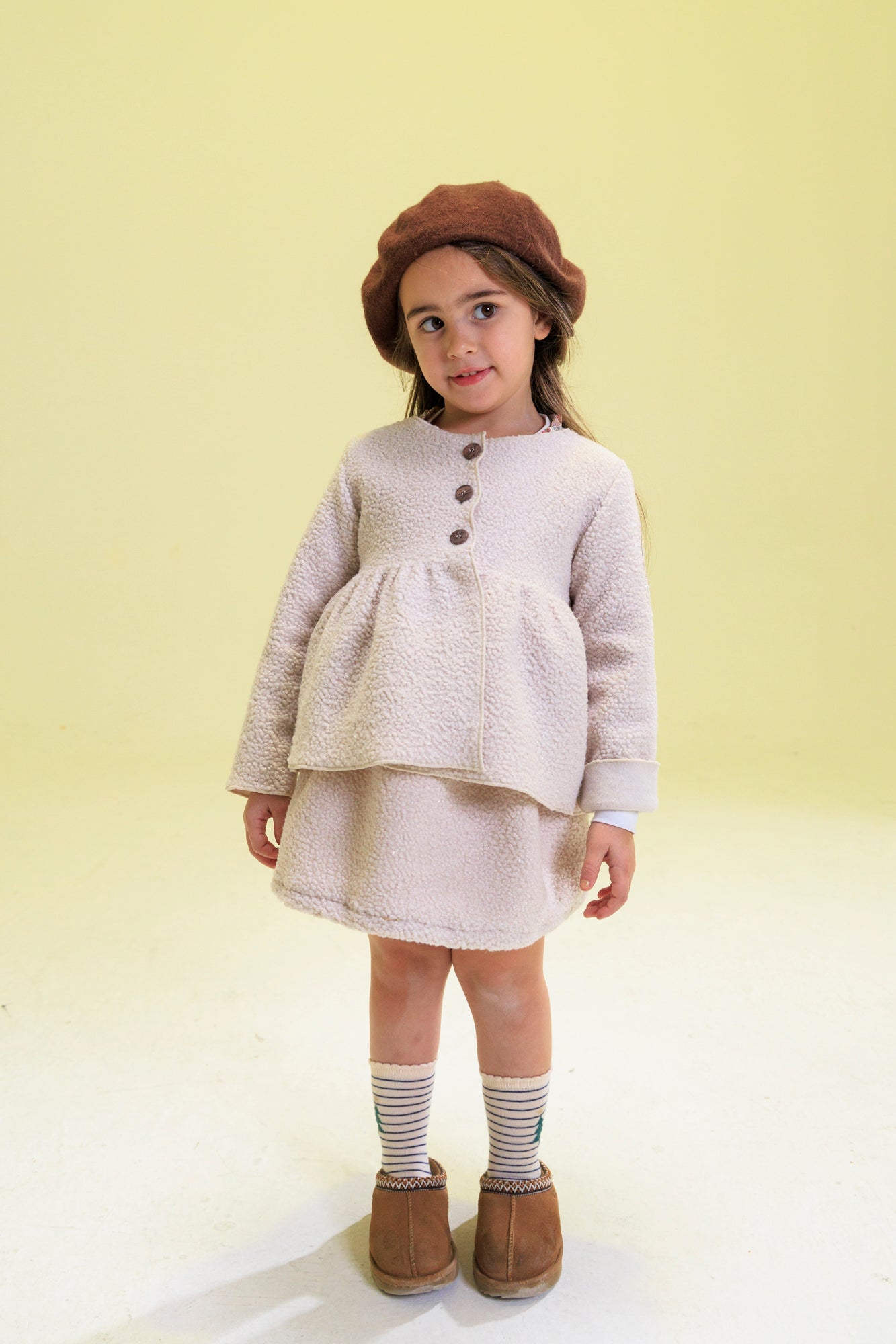 Brillare con classe! Questo completo unisce la delicatezza dei tessuti pregiati a un tocco di luce grazie al filato luminoso. La gonna dona movimento e leggerezza, mentre il cardigan completa il look con il suo design avvolgente. Perfetto per le occasioni speciali, senza rinunciare alla comodità