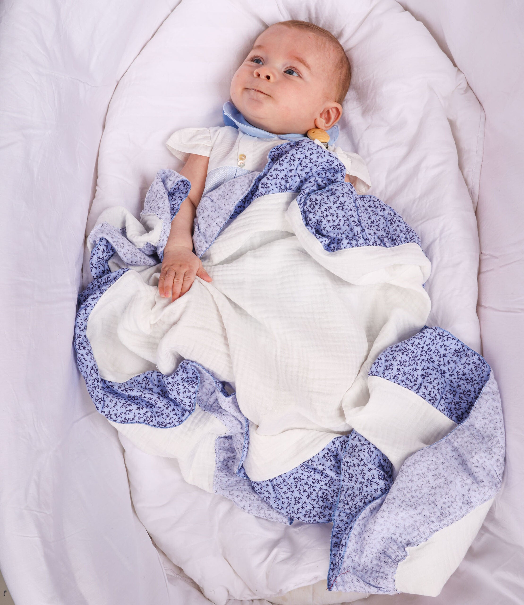 Il neonato per 9 mesi ha vissuto sereno, protetto e al caldo nel grembo della sua mamma. La copertina è proprio ciò che serve per rasserenarlo, per avvolgerlo e abbracciarlo, per fargli sentire ancora una volta quel calore che fino a quel momento ha conosciuto. Avvolgente e super morbida , la nostra copertina , 90×90, è perfetta per i caldi mesi dell’estate: realizzata internamente in mussola di cotone ed è caratterizzata dalle rifinitura in mussola fantasia, un dettaglio adatto per i nostri piccoli .