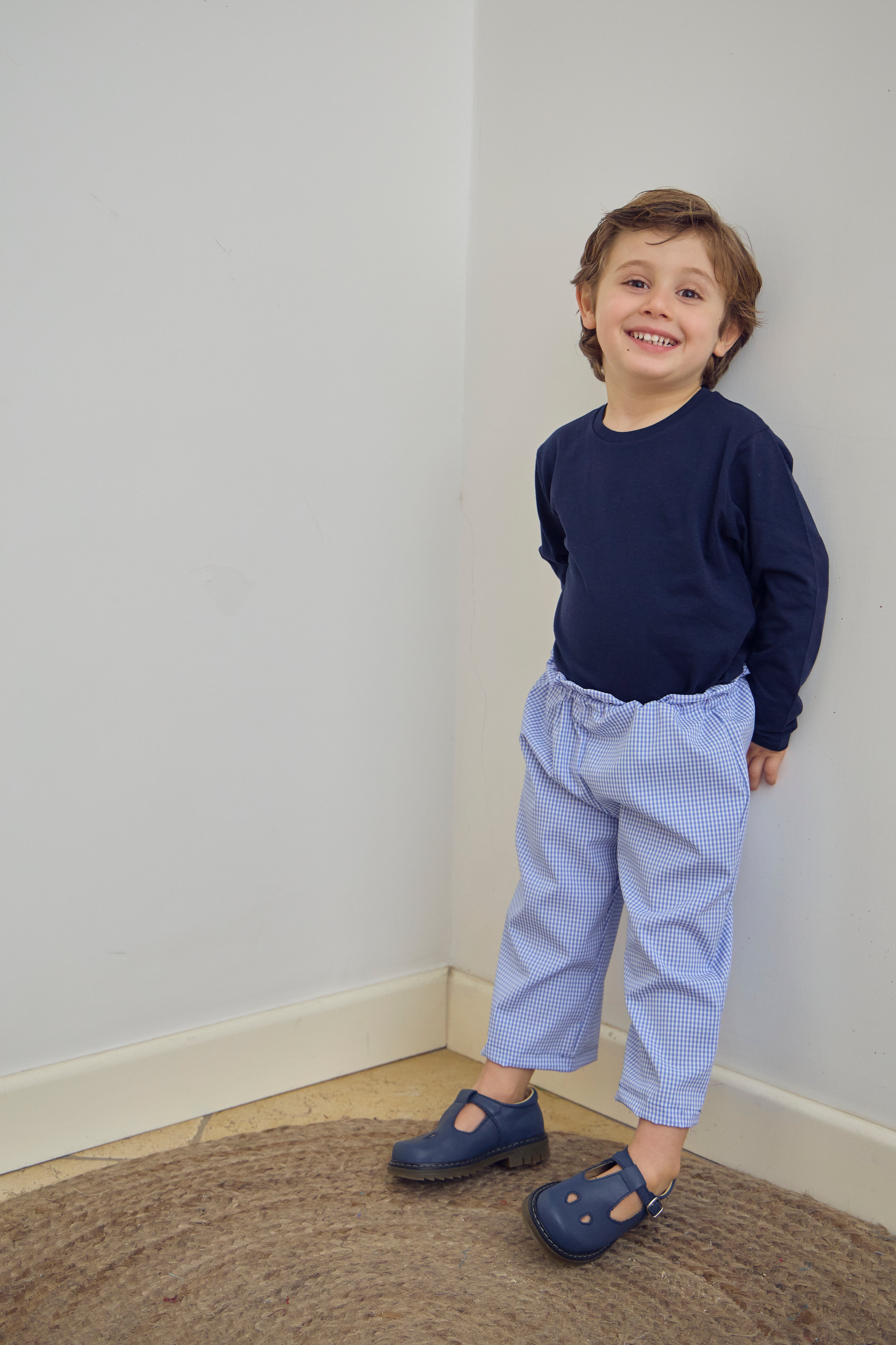 Dal taglio ampio e comodo, con la vita alta e la parte inferiore svasata, i pantaloni in cotone vichy dalla linea a “campana” sono ideali per ogni bambino. Pratici, comodi e versatili sono la risposta “chic” per una fresca primavera.