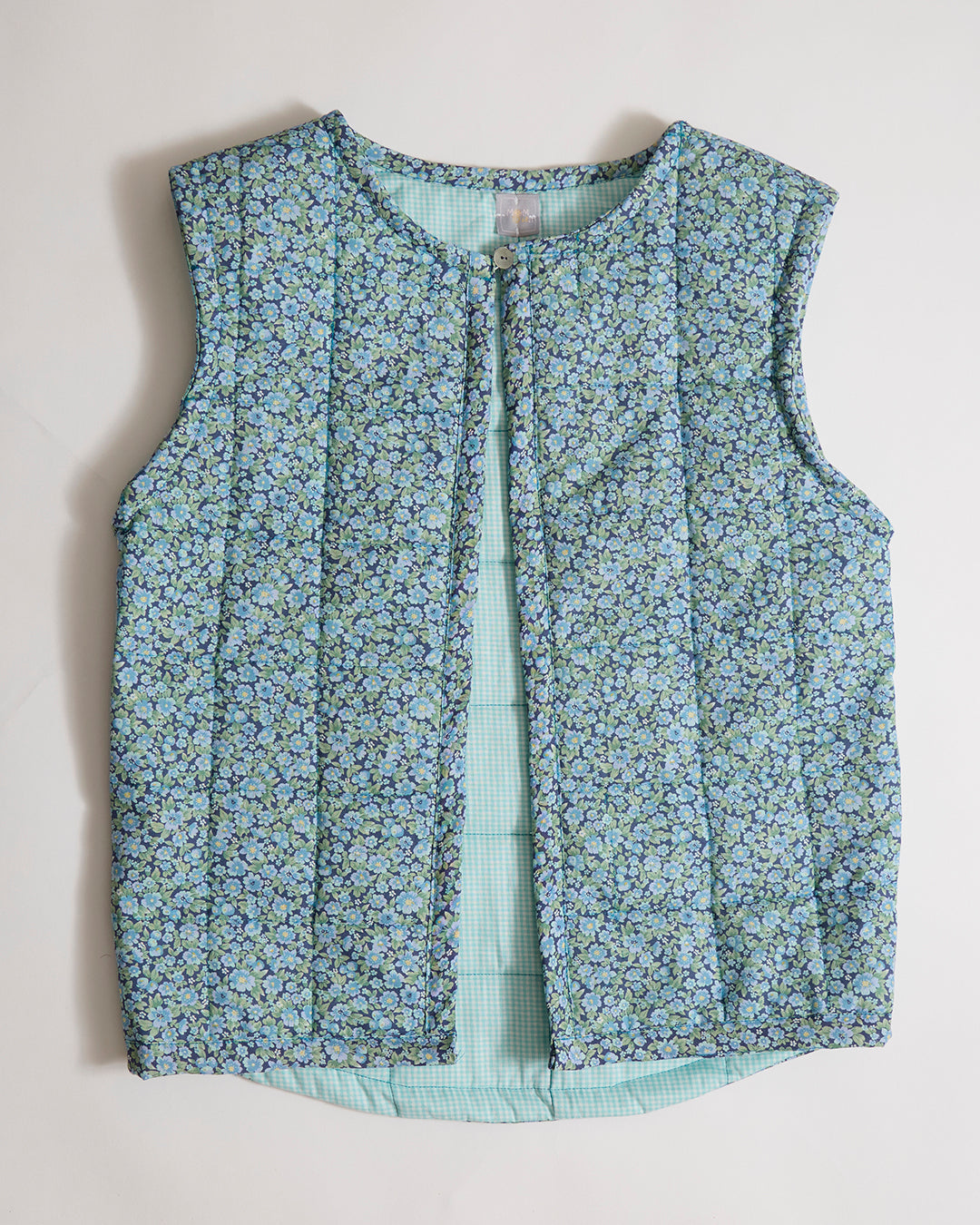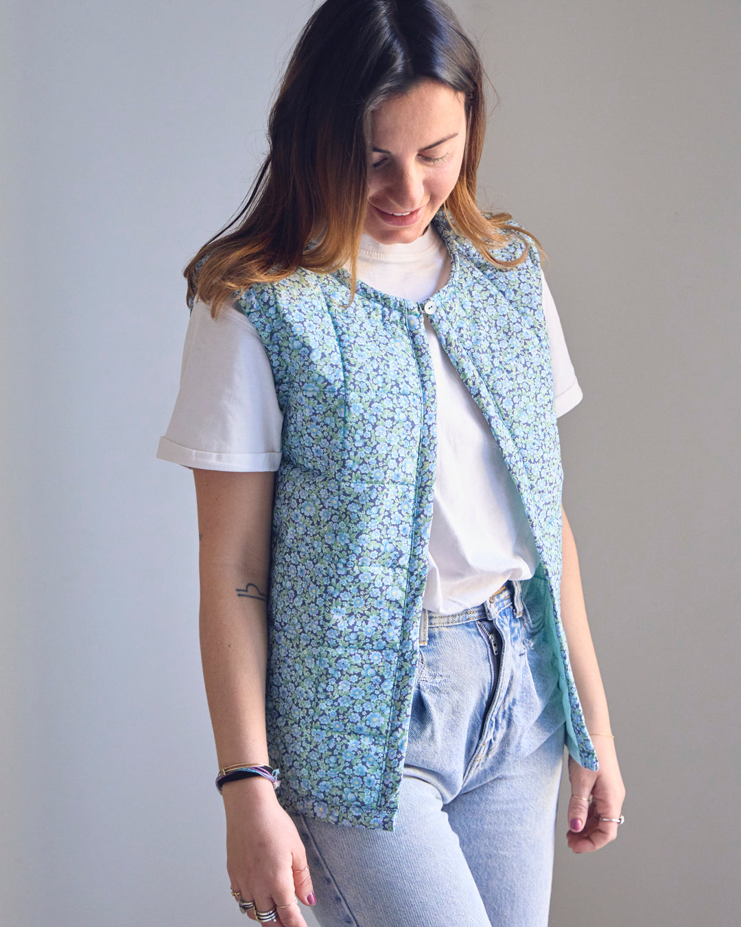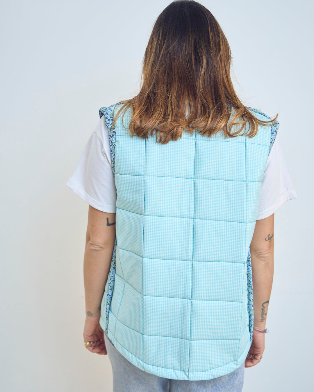 Il nostro gilet trapuntato senza maniche con stampe floreali mescolate ai quadretti è double face e verrà a riempirei ogni tuo outfit!