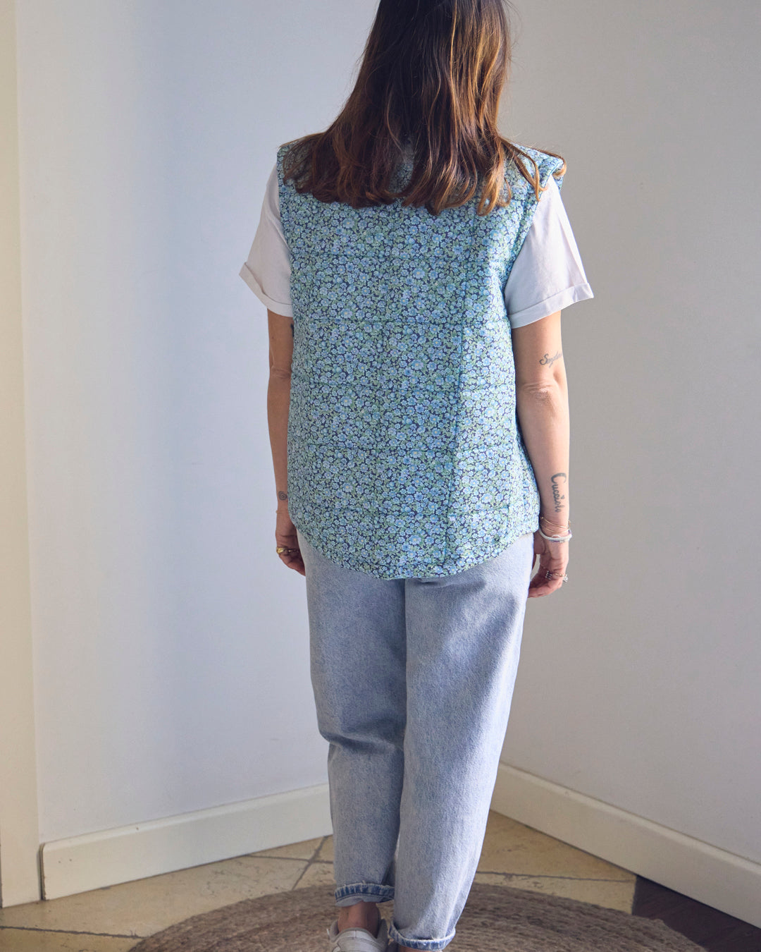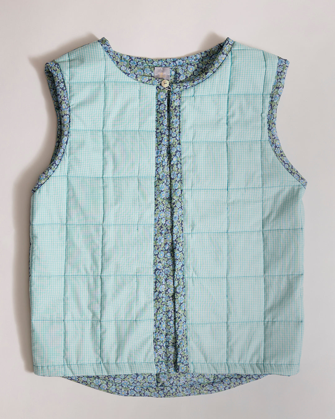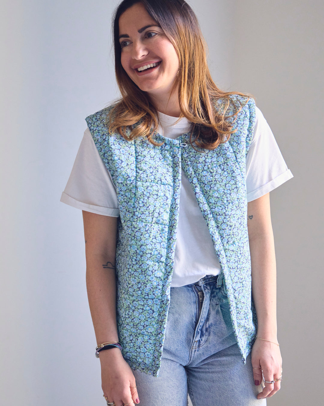 Il nostro gilet trapuntato senza maniche con stampe floreali mescolate ai quadretti è double face e verrà a riempirei ogni tuo outfit!