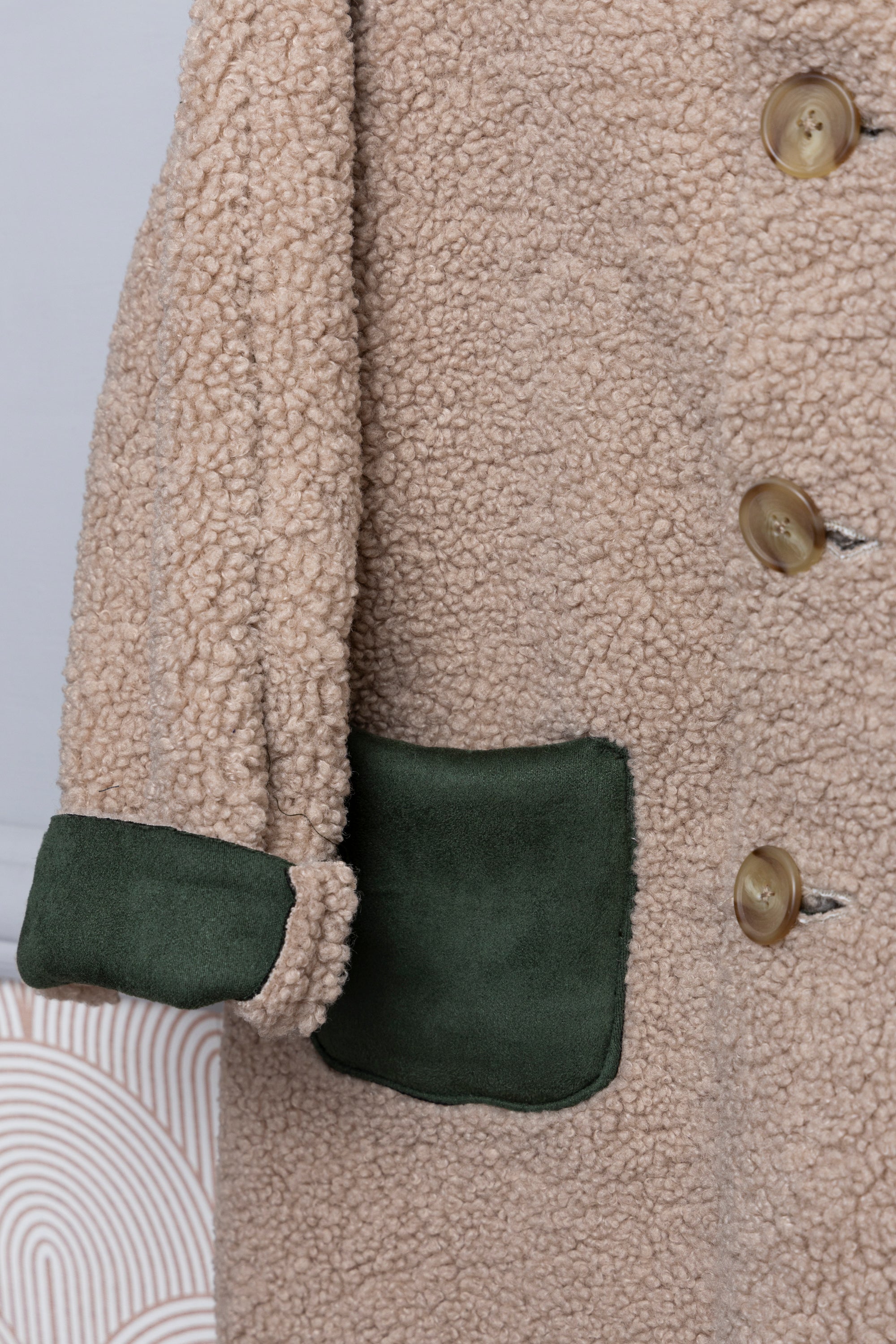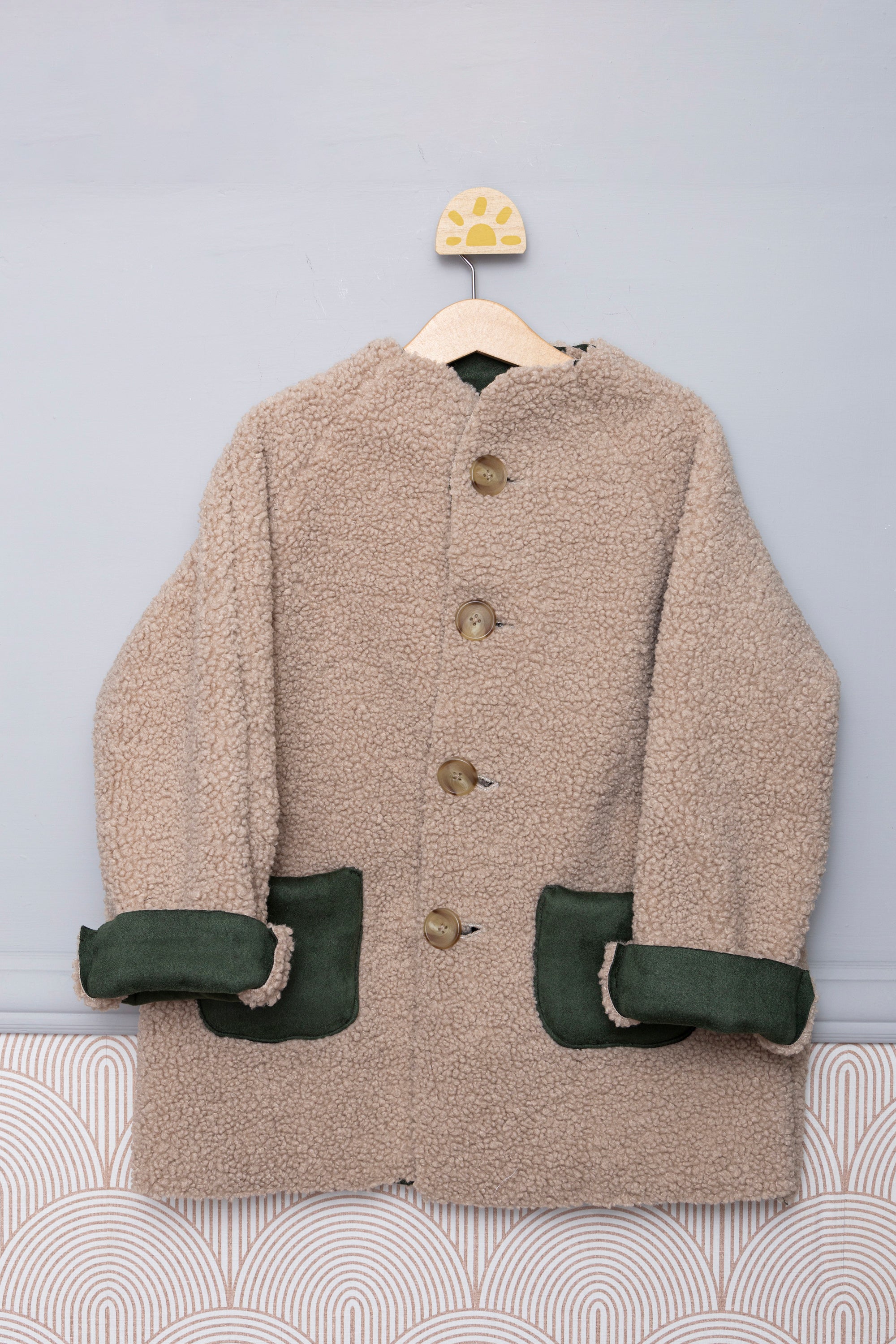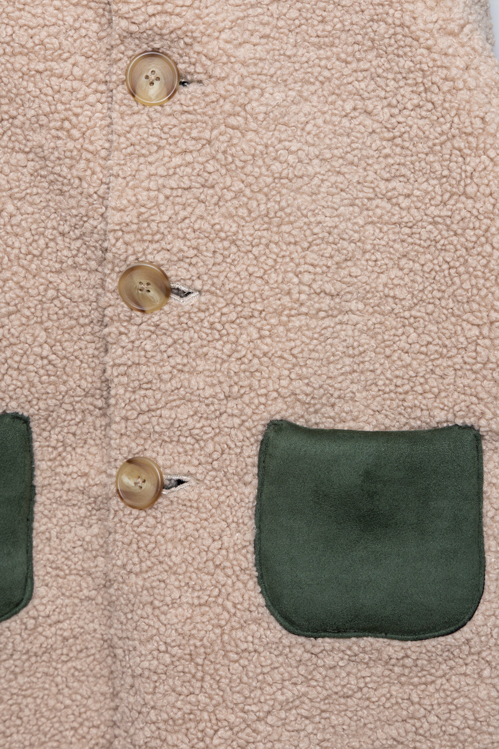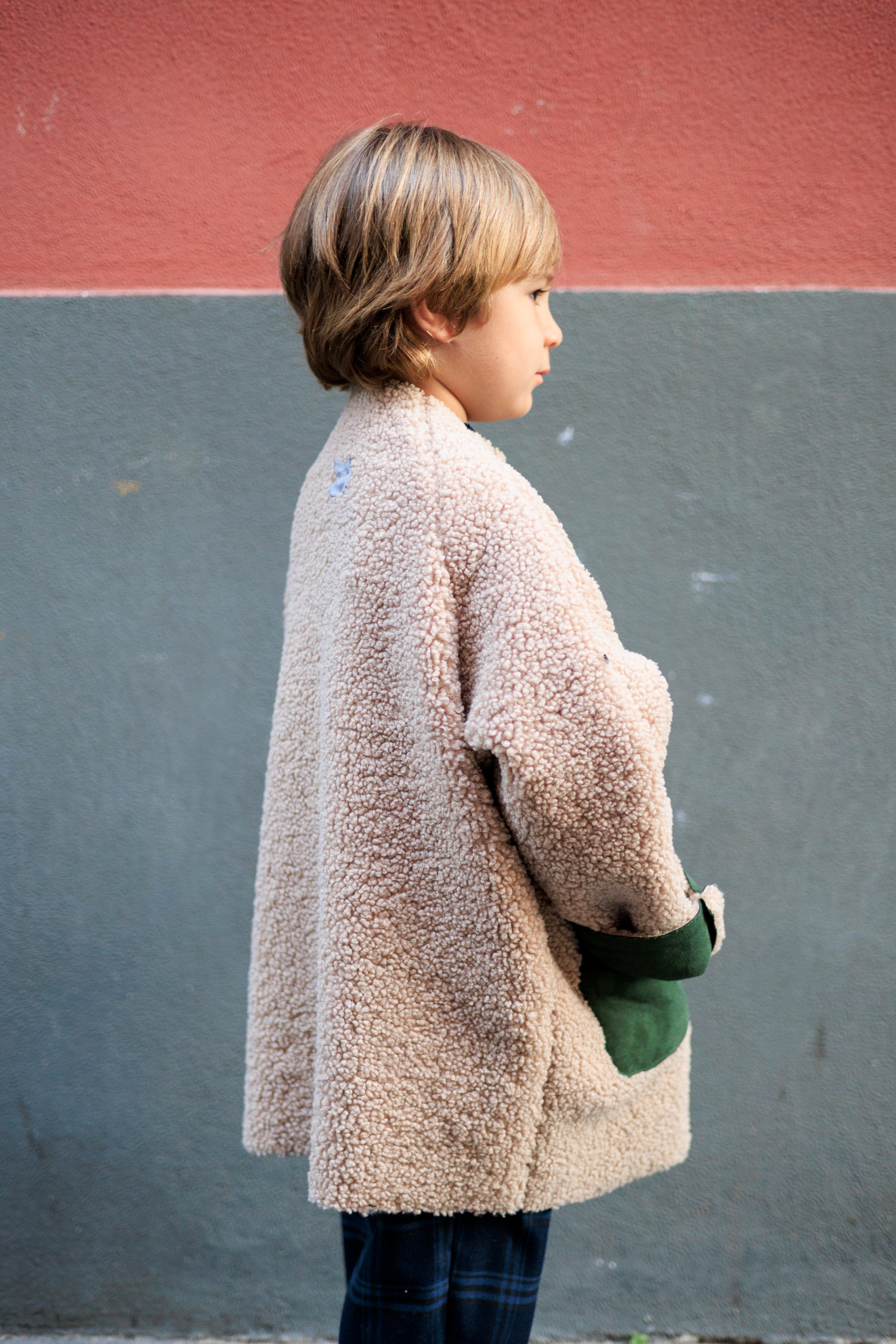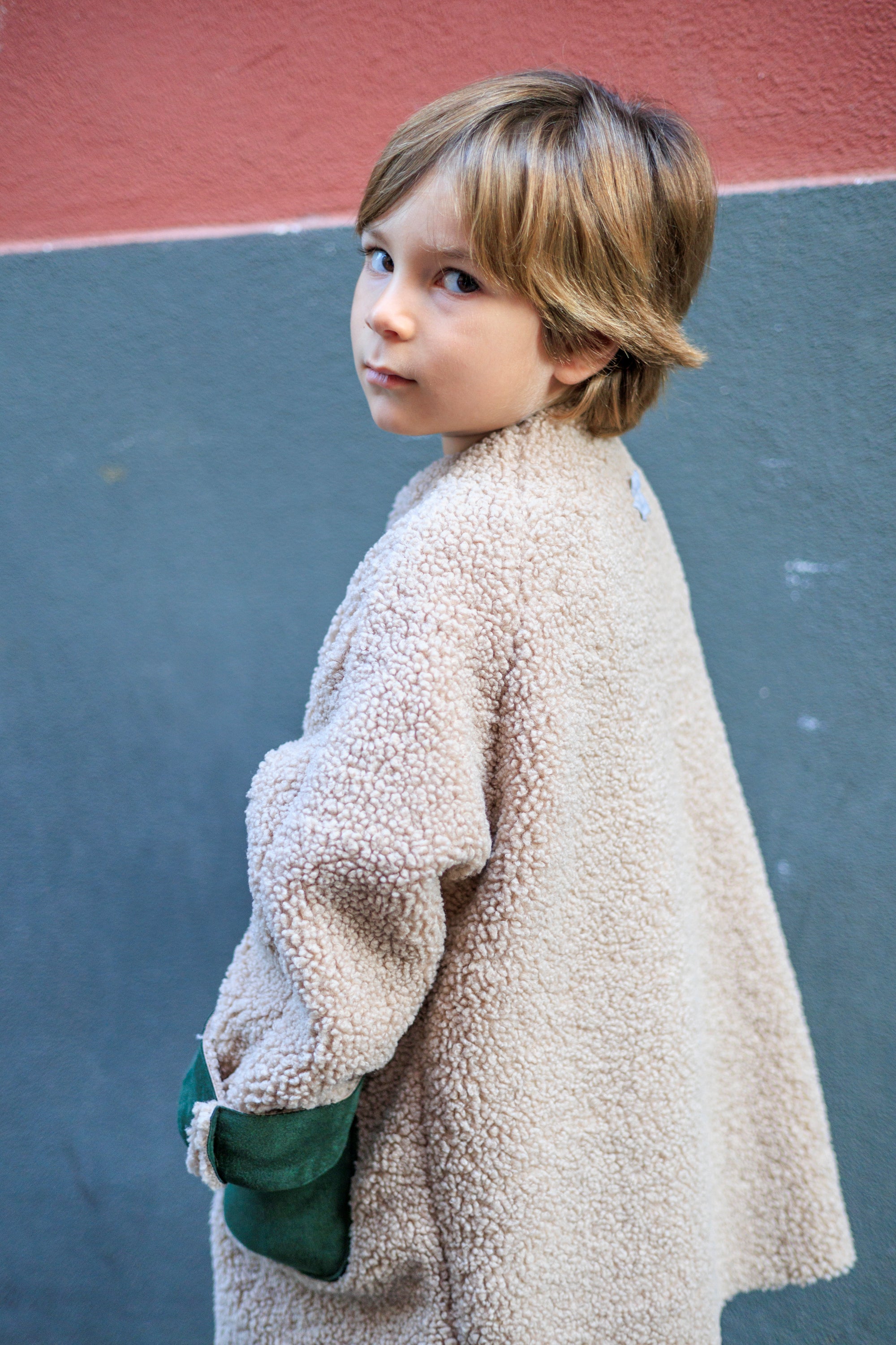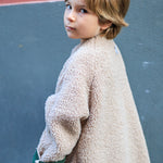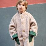 Un look urban per il montone bimbo di questa stagione. Realizzato all’incontrario : teddy esternamente e camoscio internamente! Apertura con bottoni e tasche a contrasto , offrono un tocco di stile in più a questo capo, morbido e caldo, perfetto per affrontare il freddo autunnale. Indossato sopra un pullover o una felpa, si adatterà a tutti gli stili.