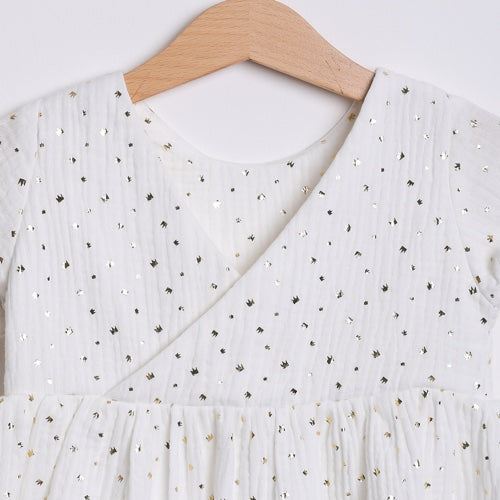 Volutamente scelta la mussola, tessuto leggero e di moda che al meglio valorizza questo abito ispirato allo stile Causal, adatto per ogni occasione.