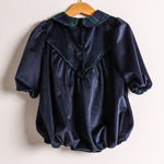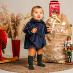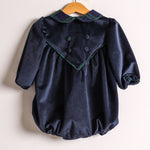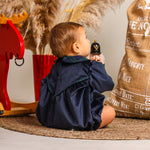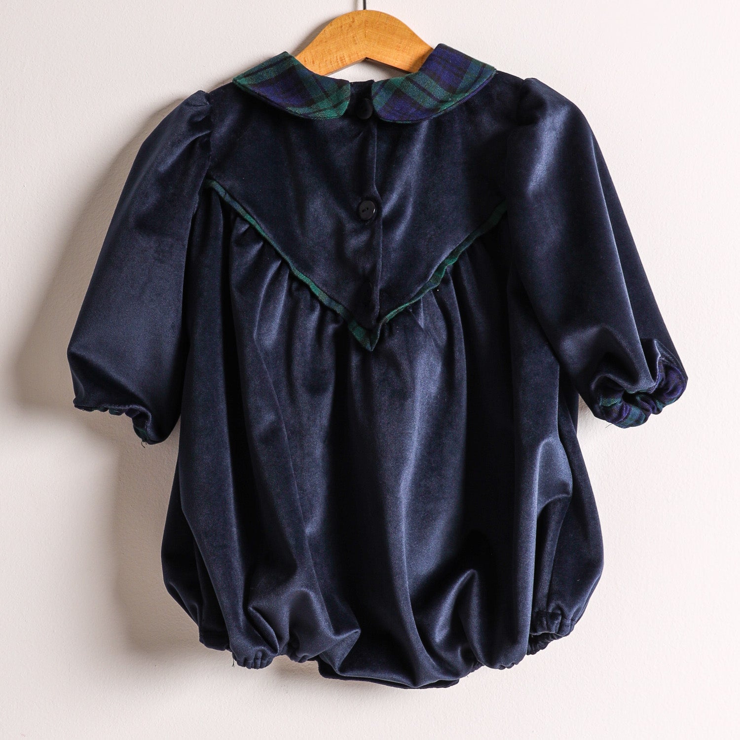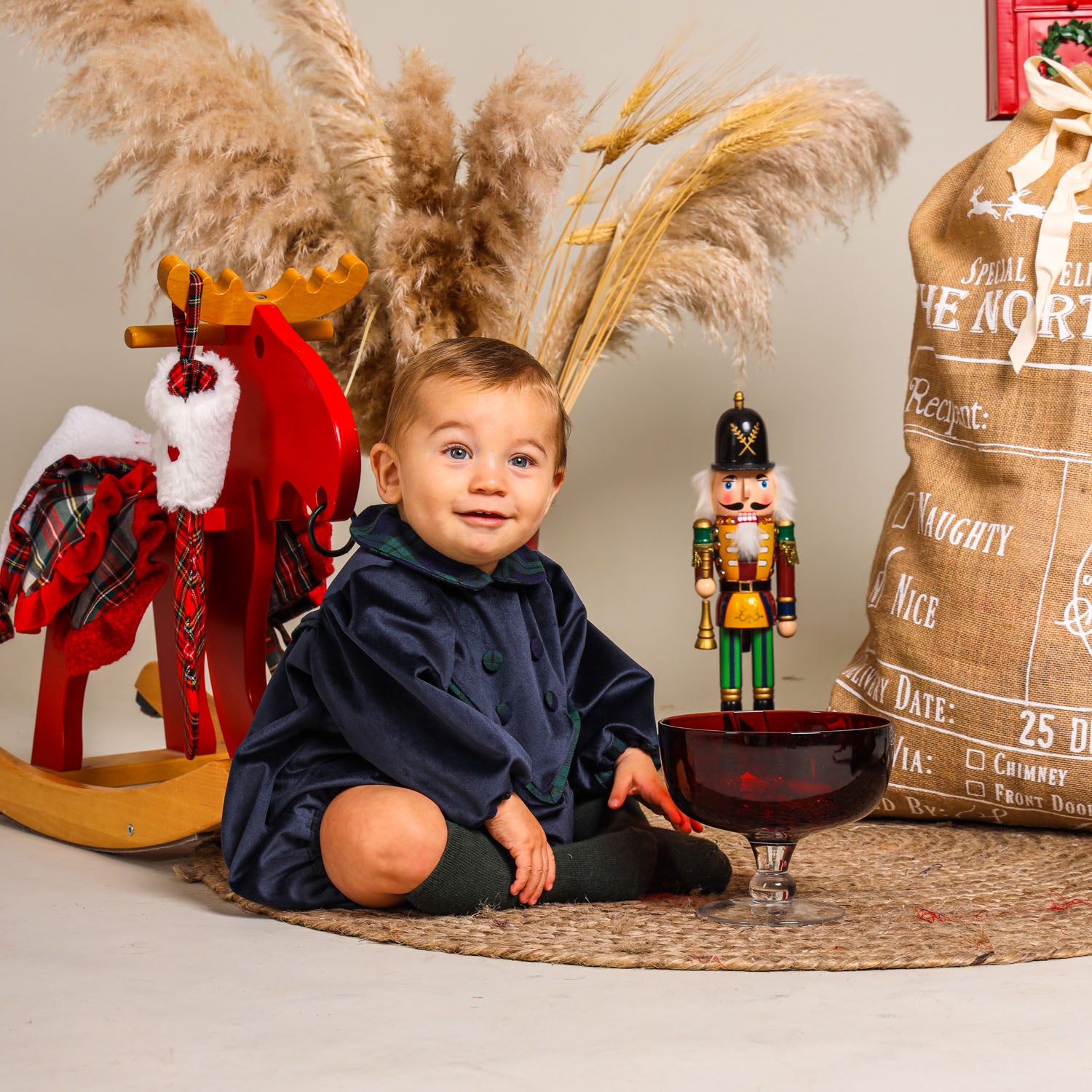 ••Modello emblematico e senza tempo della nostra Christmas Coordinates, il pagliaccetto neonato/a di questo Natale è realizzato in velluto liscio,dalla tonalità blu Natale ,di cotone 100% arricchito dal colletto in tartan e decorato da eleganti bottoncini rivestiti in tessuto che creano un gioco di forme e un’eleganza che si contraddistingue!••