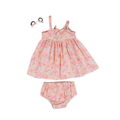 Il completo super liberty é irresistibile! Delicato, originale, e raffinato questo set composto da un RICERCATO vestitINO con fiocco CON BRETELLE REGOLABILI e i bloomers abbinati sono realizzati in cotone Tana Lawn, morbido come la seta e riccamente dettagliato, un capolavoro in stile miniaturizzato. Dalla sua stampa affascinante questo set super baby é un classico di tutti i i tempi CHE DONA UNO STILE MINI PRINCIPESCO! DA 0/1 A 9/12 M