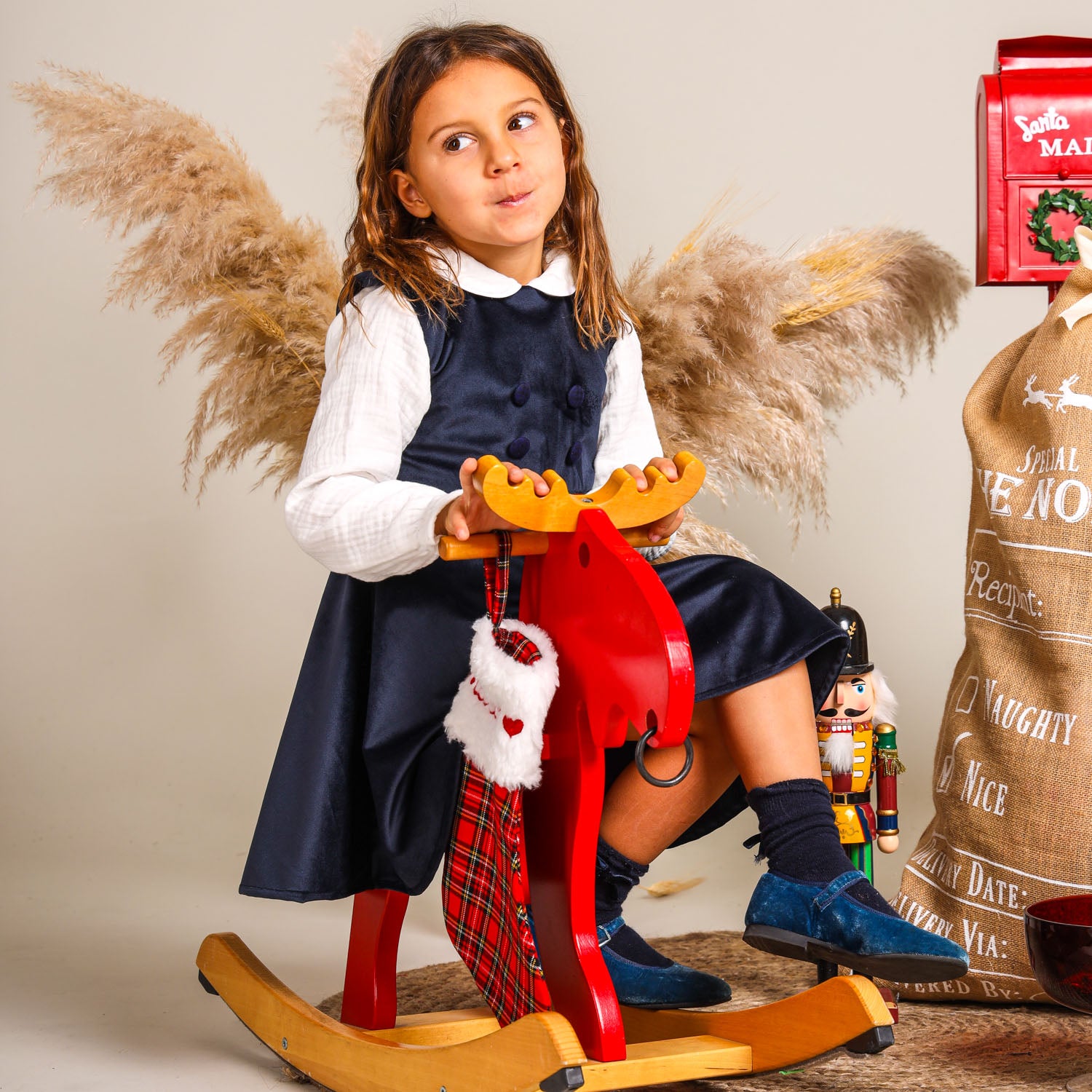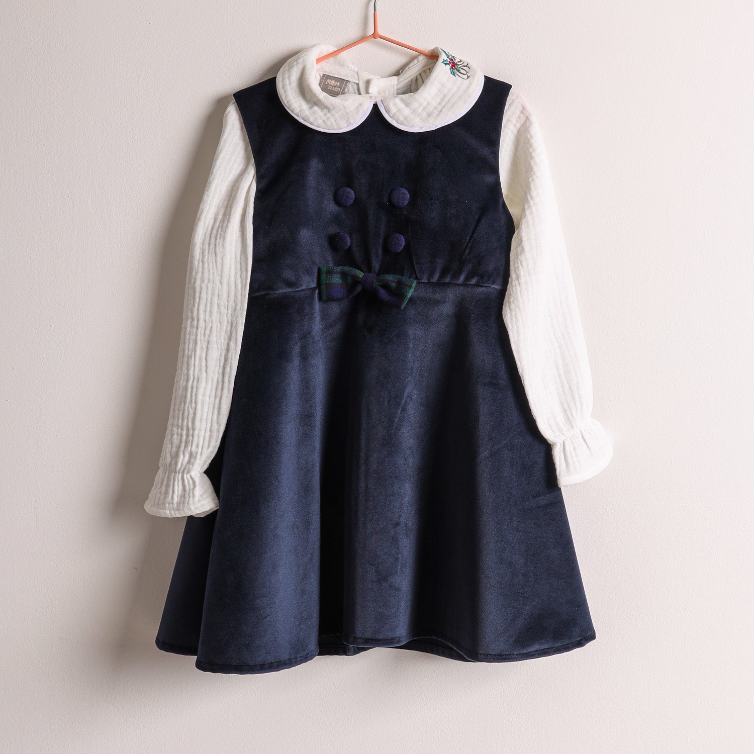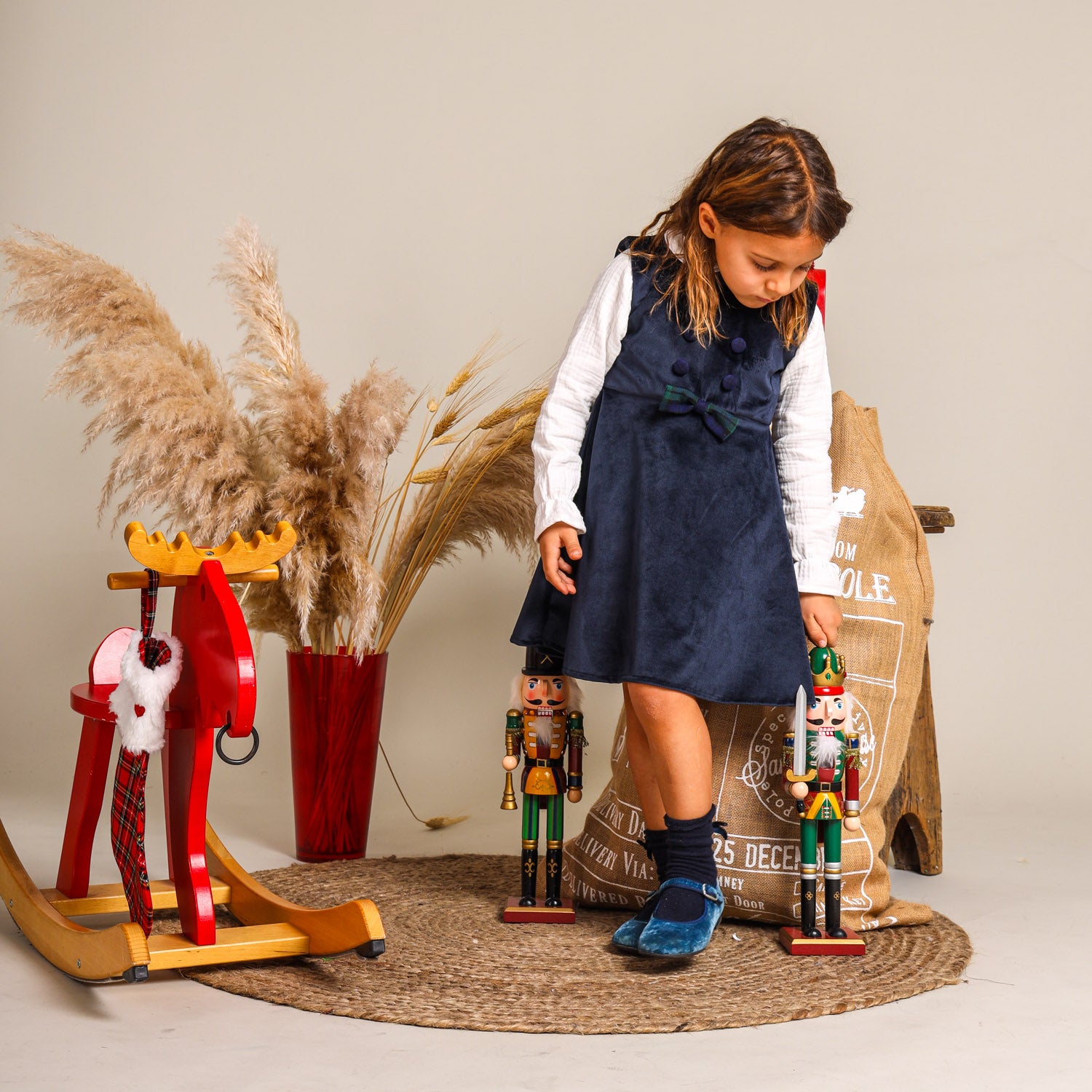 ••Con il suo taglio minimalista e i suoi dettagli raffinati, l'abito bimba della nostra Christmas Coordinates è realizzato in morbido velluto. Di un bel blu deciso o di un rosso Natale , questo capo emblematico dall'eleganza francese potrà essere indossato durante le festività natalizie con la camicetta , in mussola di cotone tripla garza , arricchita da un colletto con ricamo natalizio!••