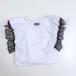 La t-shirt può essere realizzata con le rouches in diversi tessuti disponibili.