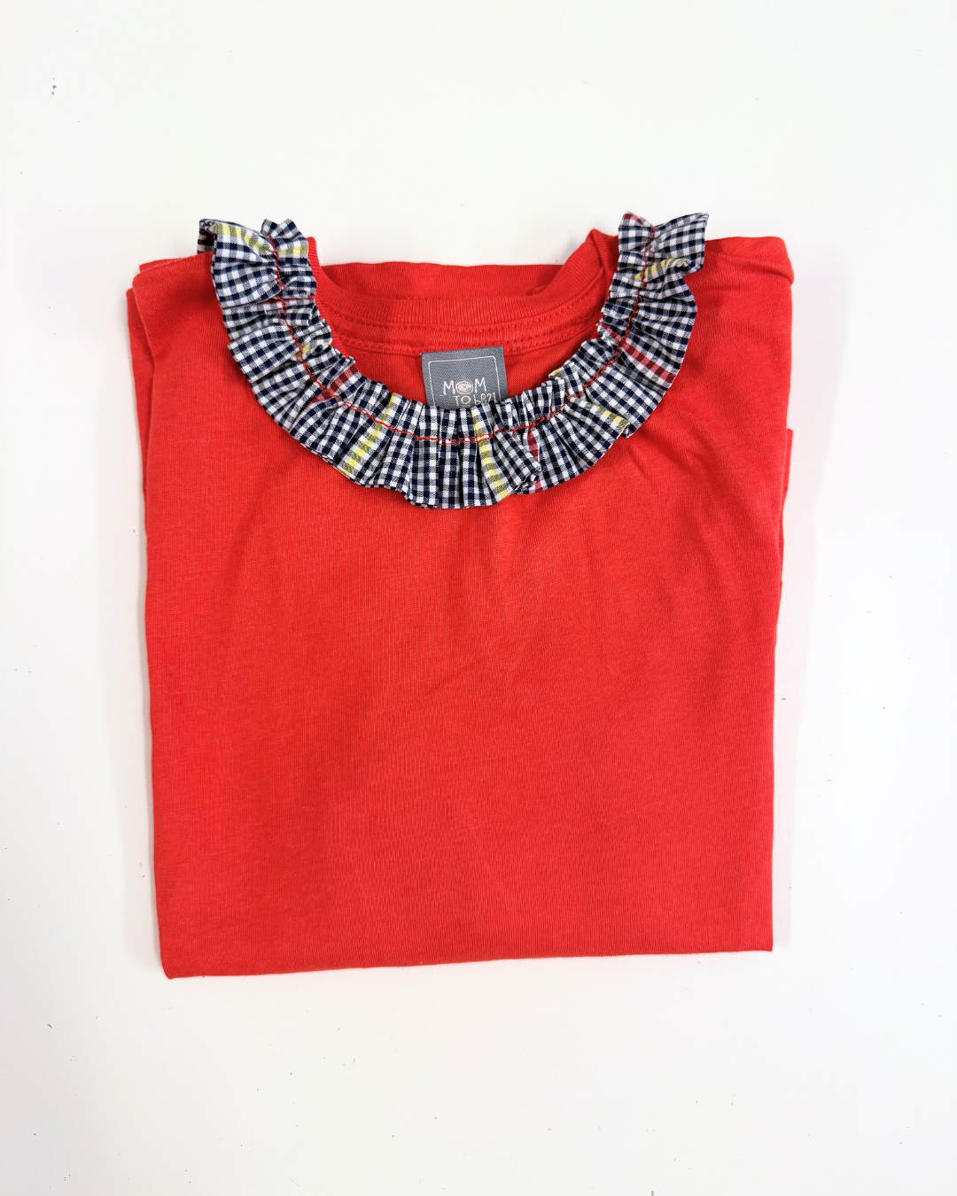 T-Shirt red con colletto in Vichy Blu