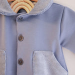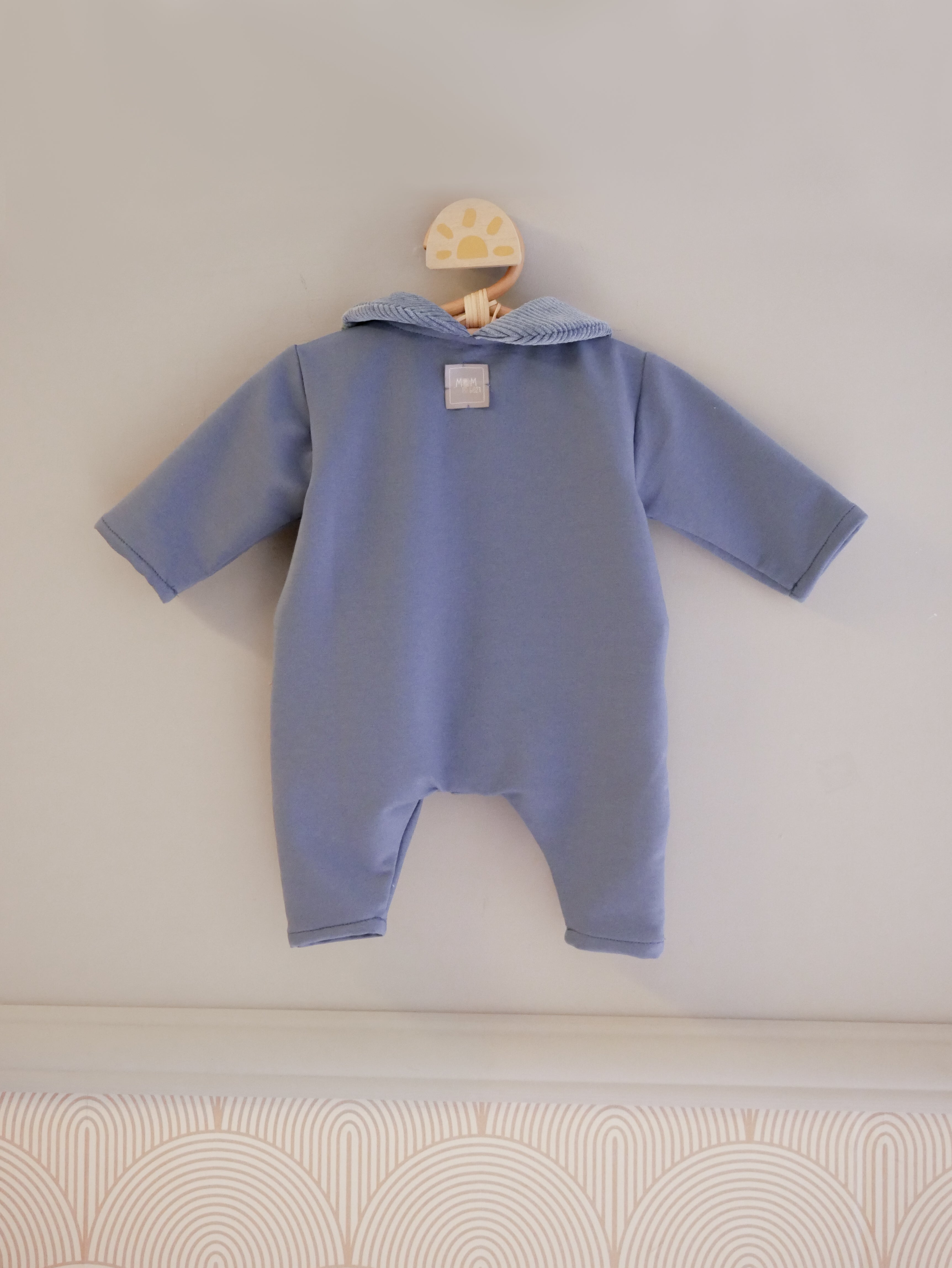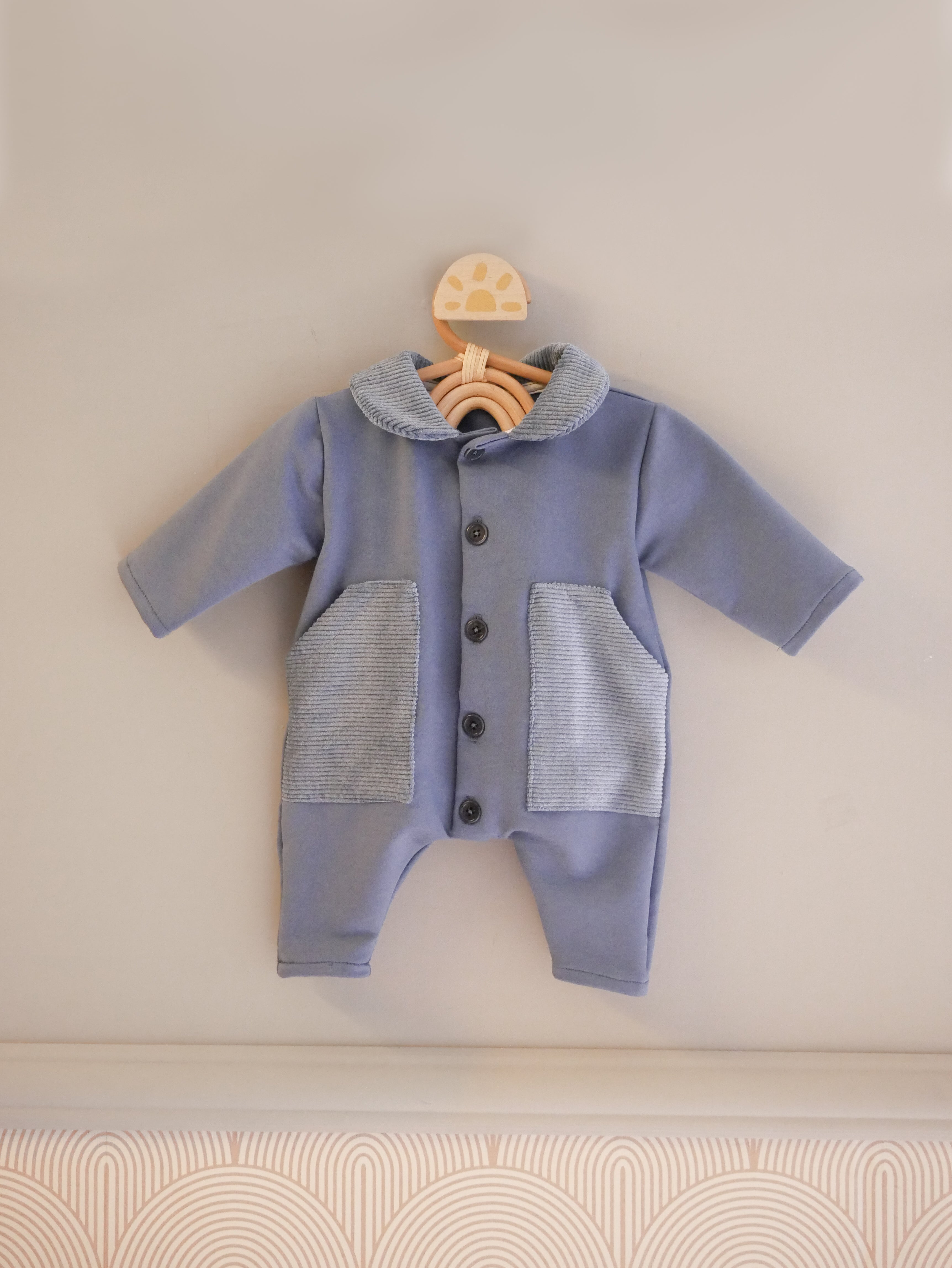 Capo comodo e pratico per eccellenza, questa stagione, una versione sporty-chic e city della tutina bimbo/a che gli offrirà tutto il comfort necessario. In jersey di cotone, un colletto in velluto che richiamano le tasche impreziosiscono questo modello , che potrà essere indossato in ogni occasione .